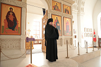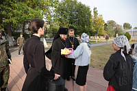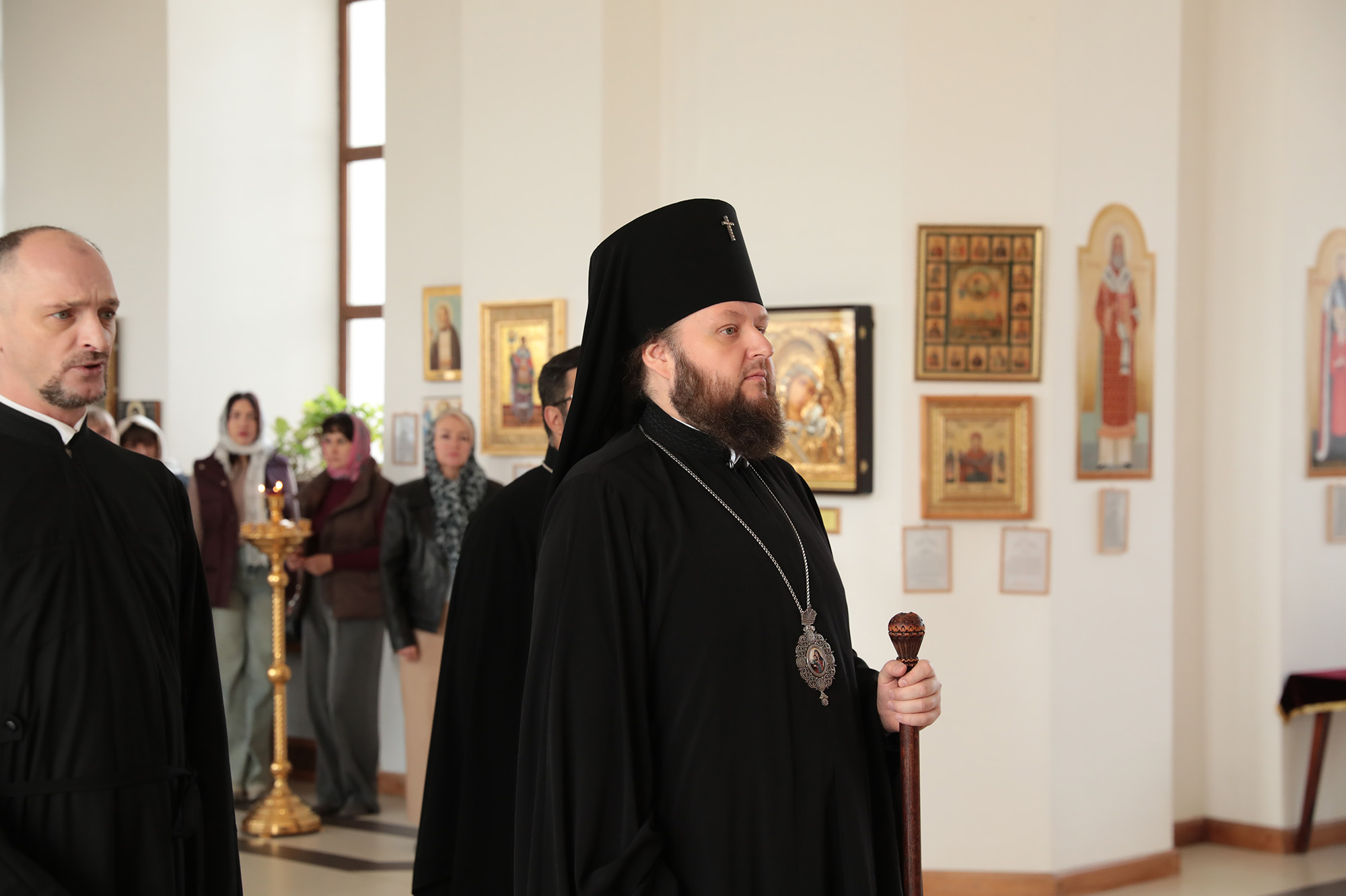 После трапезы архиепископ Аксий посетил воскресную школу при домовом храме блаженной Матроны Московской, где совершил молебен, пообщался с учащимися и подарил ребятам книги.