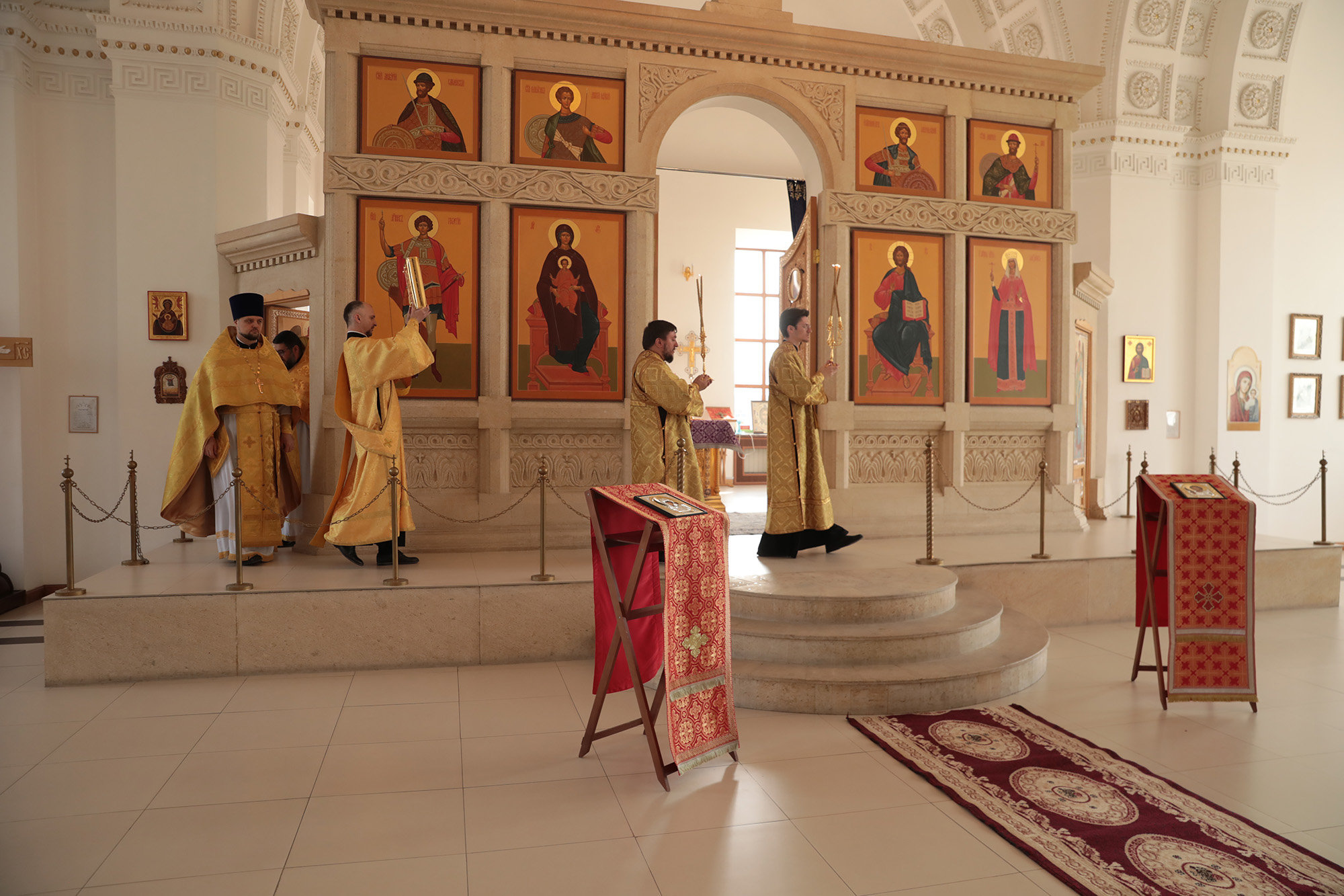 Его Высокопреосвященству сослужили секретарь Подольского епархиального управления иерей Константин Семёнов и настоятель храма иерей Тимофей Казарян, помощник командира 102-й военной базы по работе с верующими военнослужащими.
