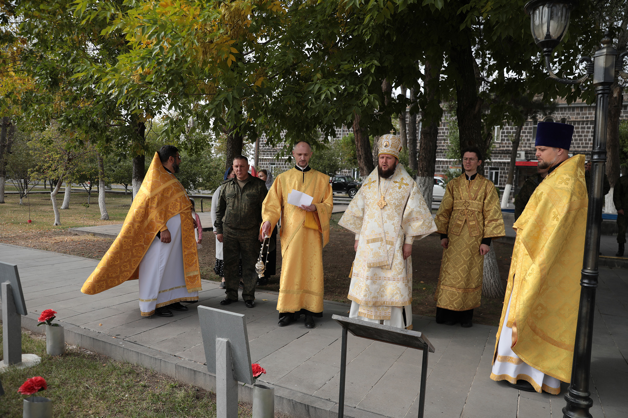 По окончании богослужения на Аллее памяти владыка совершил заупокойную литию по погибшим в ходе проведения специальной военной операции.