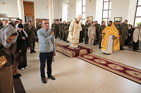 За богослужением молились командир базы генерал-майор А.В.Безбородов, офицеры, военнослужащие и члены их семей.