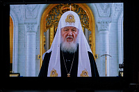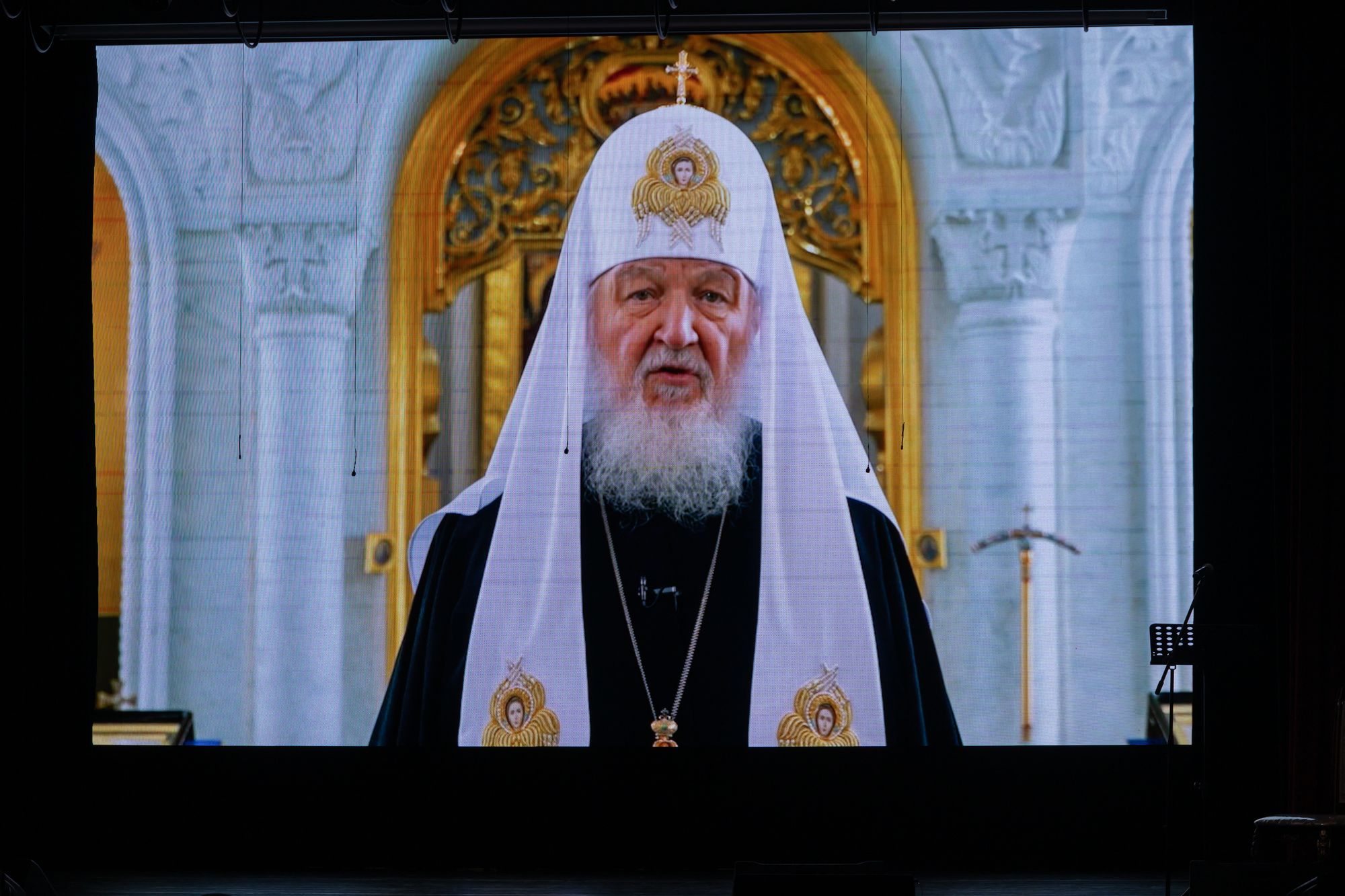 Участники Вечера памяти заслушали проникновенное видеообращение Святейшего Патриарха Московского и всея Руси Кирилла, посвящённое святителю Тихону.