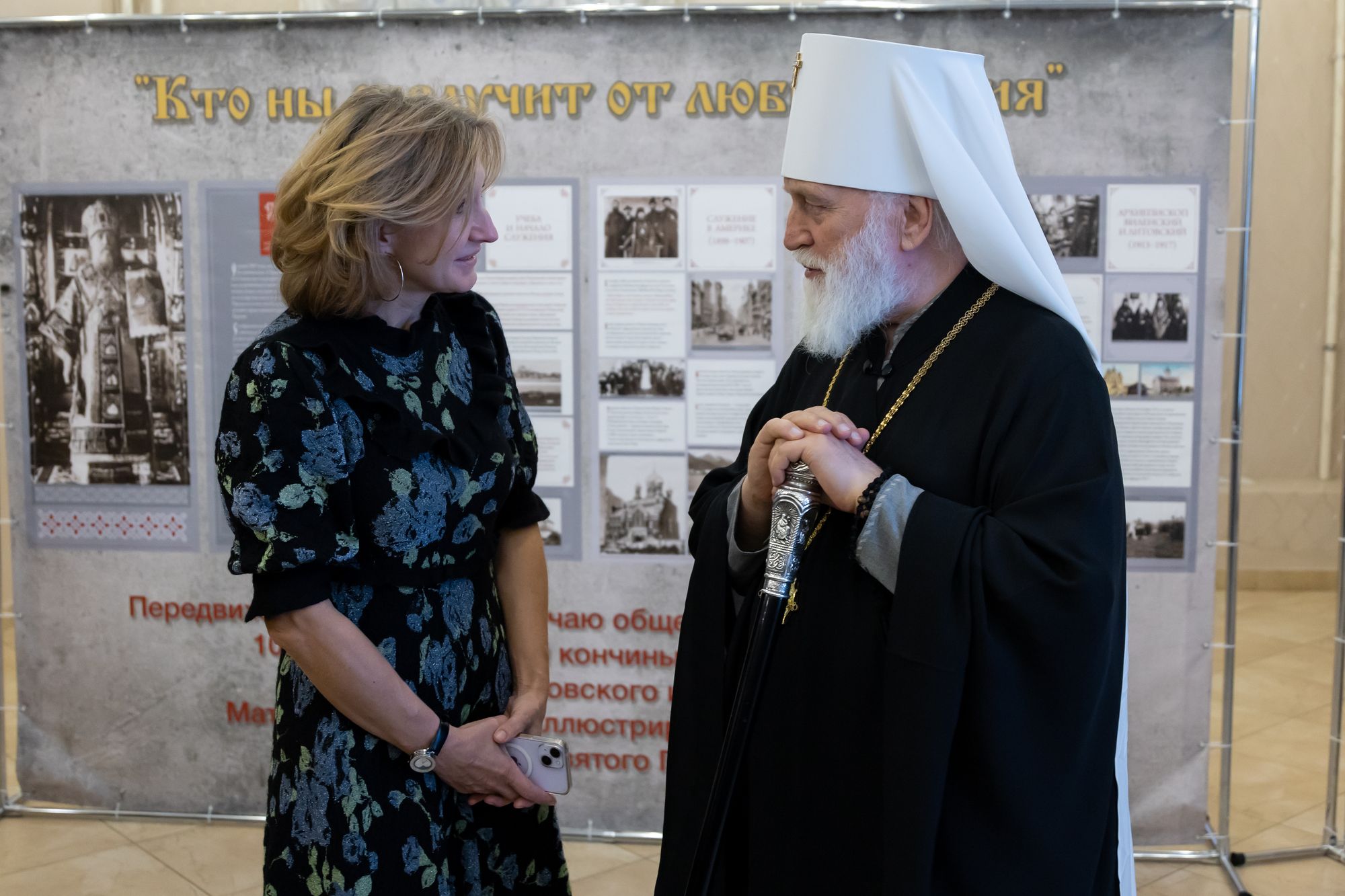 В фойе Дворца Культуры была организована фотовыставка «Кто ны разлучит от любве Божия», посвящённая 100-летию со дня блаженной кончины святителя Тихона, с которой познакомились все участники Вечера памяти.