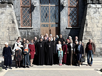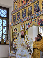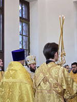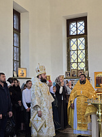 Его Высокопреосвященству сослужили секретарь Подольского епархиального управления иерей Константин Семёнов и настоятель храма иерей Тимофей Казарян, помощник командира 102-й военной базы по работе с верующими военнослужащими.