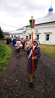 По окончании Божественной литургии и крестного хода настоятель иерей Илия Царьков поздравил собравшихся с праздником.