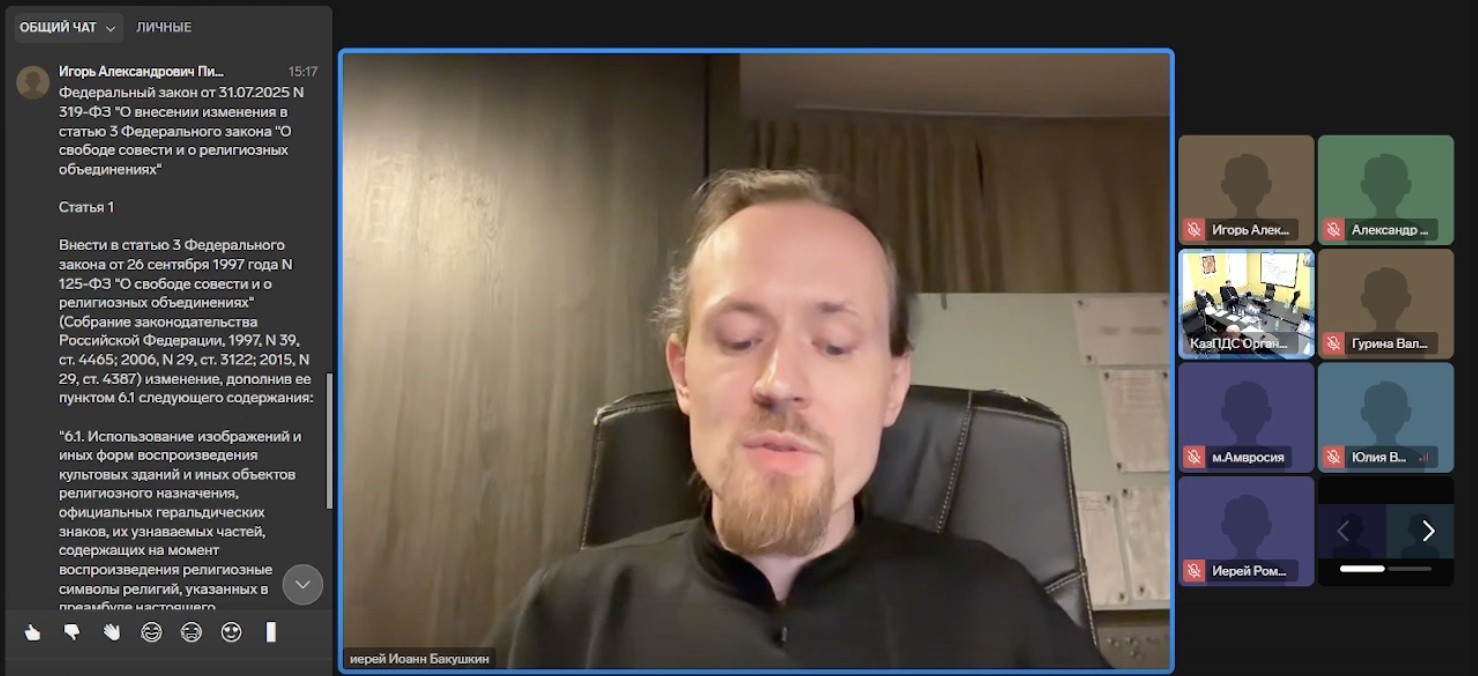 Также в работе конференции в формате видеоконференцсвязи принял участие председатель Отдела по миссионерской работе и делам молодежи Коломенской епархии, выпускник аспирантуры по психологическим наукам и магистрант по каноническому праву иерей Иоанн Бакушкин, который представил доклад «Судебная экспертиза в системах государственного и церковного права».