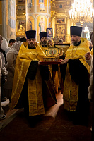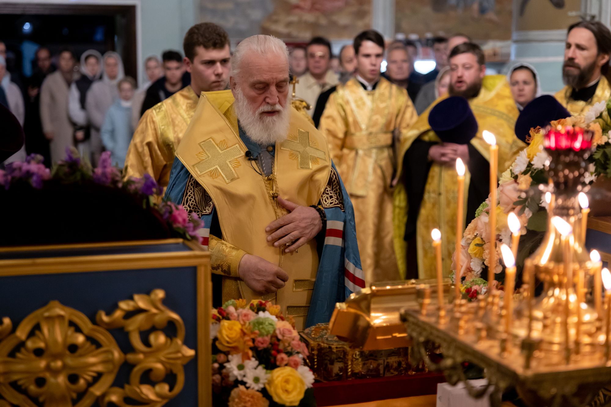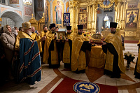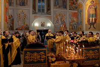 Богослужебные песнопения исполнил соборный хор под управлением Наталии Камышниковой.