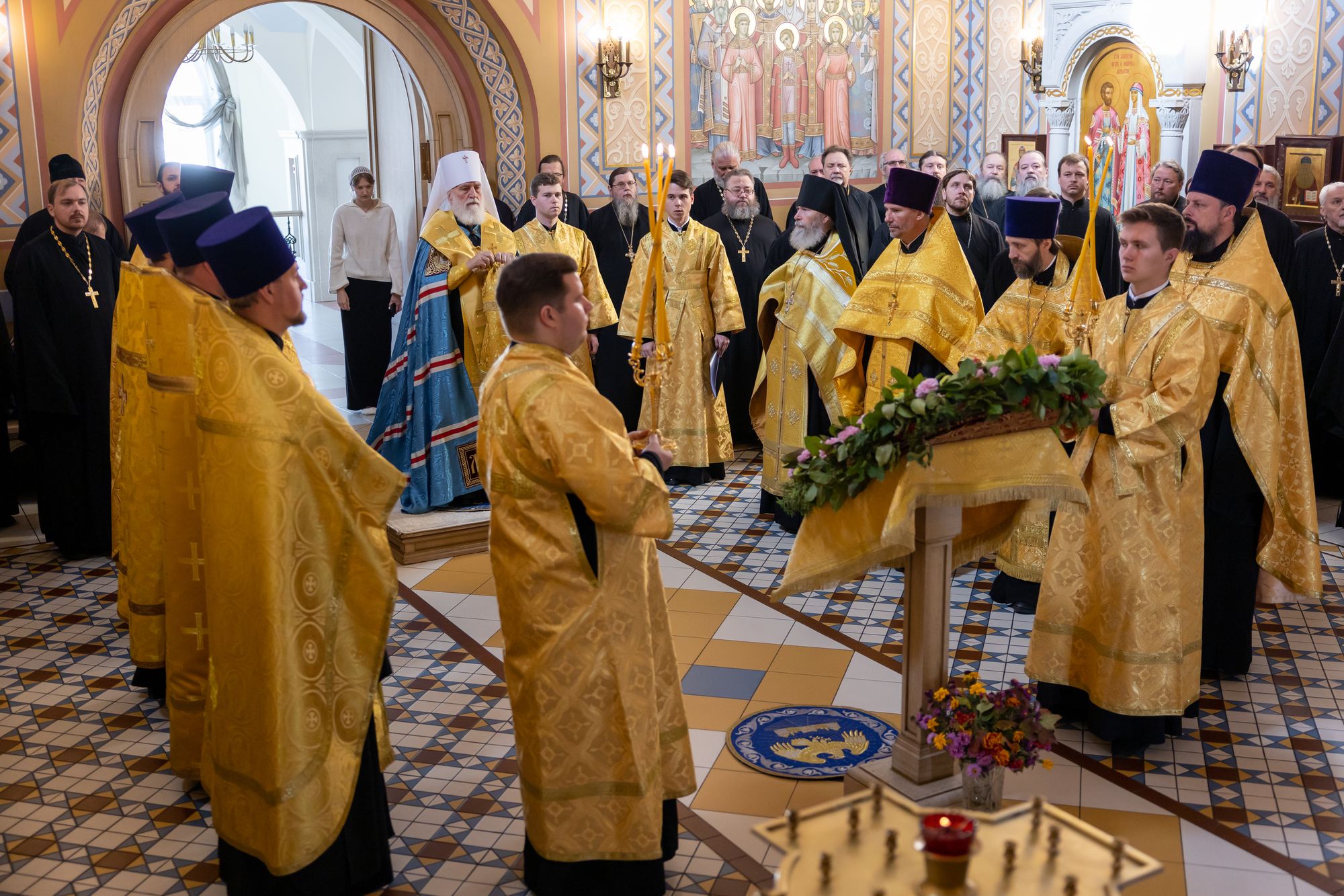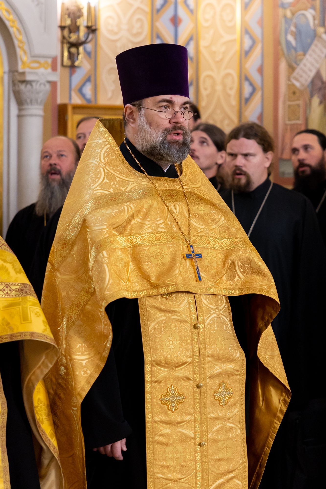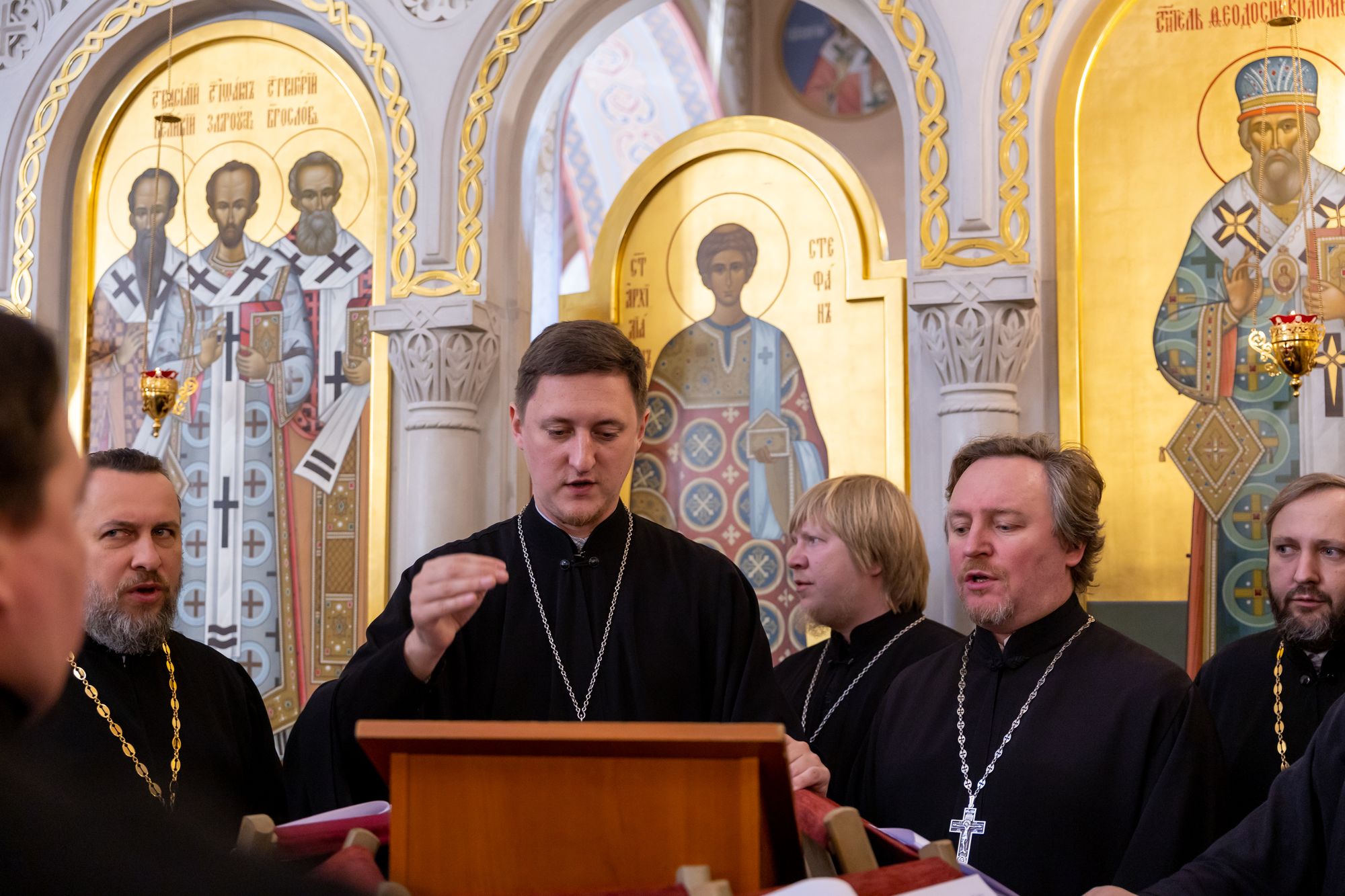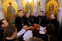 Богослужебные песнопения исполнил хор духовенства под управлением иерея Николая Глухова.