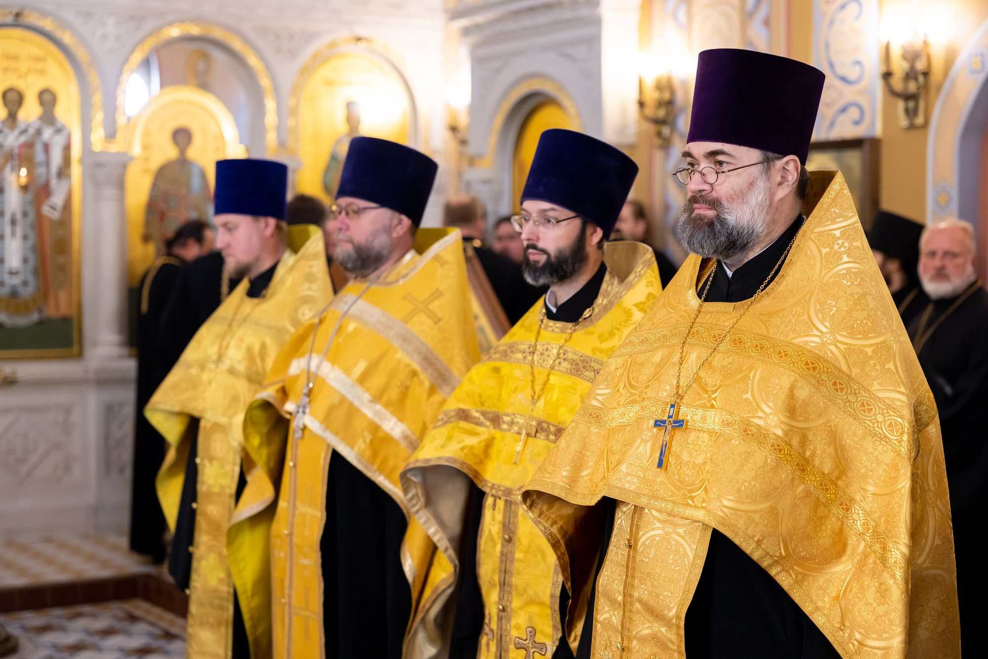 Его Высокопреосвященству сослужили: ректор Коломенской духовной семинарии протоиерей Вадим Суворов, настоятель Богоявленского Старо-Голутвина мужского монастыря города Коломны игумен Варлаам (Горбунов), настоятель Трёхсвятительского семинарского храма иерей Василий Казинов, отцы благочинные и священнослужители, которые начинают обучение на курсах.
