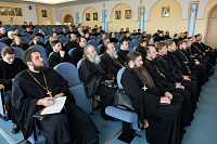 Затем в актовом зале Коломенской духовной семинарии митрополит Павел открыл курсы лекцией «Актуальные вопросы епархиальной жизни».