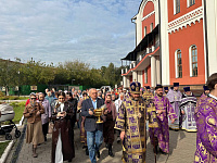 После Литургии был отслужен молебен с акафистом перед мощами святителя Тихона, Патриарха Московского. Затем состоялся крестный ход вокруг кафедрального собора.
