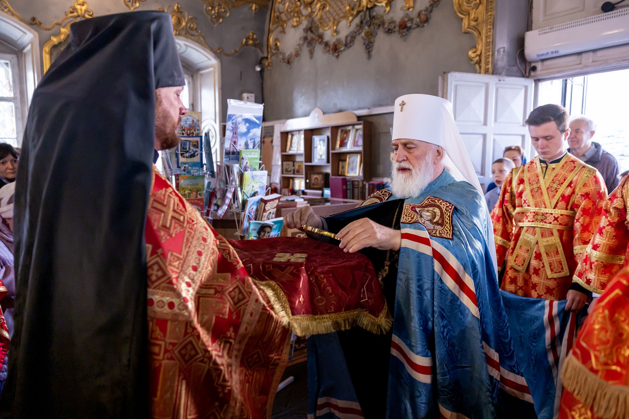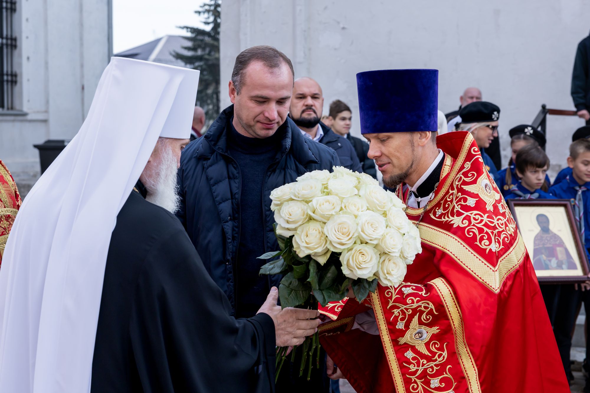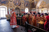 Его Высокопреосвященству сослужили: благочинный 1-го Бронницкого округа и настоятель собора иерей Сергий Себелев, благочинный 2-го Бронницкого округа иерей Алексий Розов, а также клирики 1-го и 2-го Бронницких благочиний.