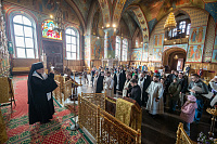 По окончании богослужения владыка Николай обратился к участникам соревнований с архипастырским словом и благословил начало турнира.