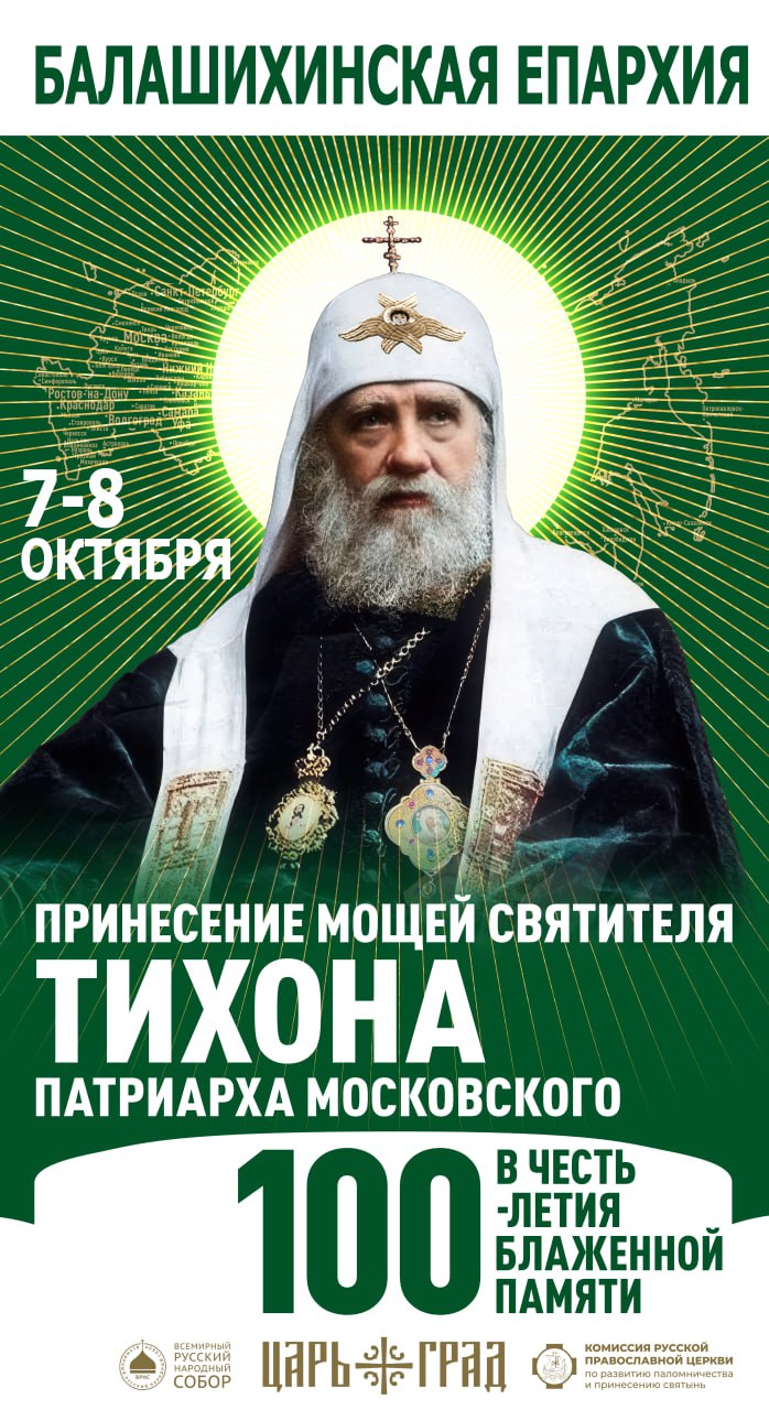 Всероссийское принесение ковчега с мощами святителя Тихона, Патриарха Московского, проходит по благословению Святейшего Патриарха Московского и всея Руси Кирилла.
