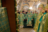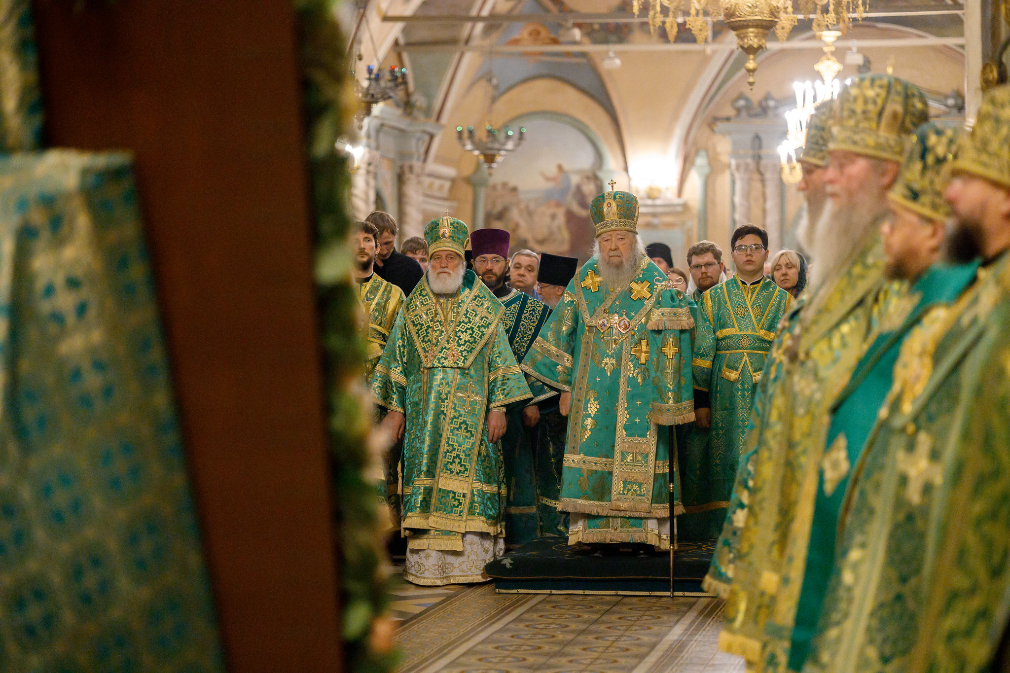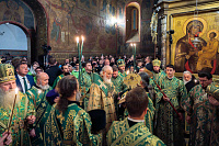 В храме молились архиереи, настоятельницы женских монастырей, священнослужители, монашествующие и паломники, прибывшие на торжества в лавру.