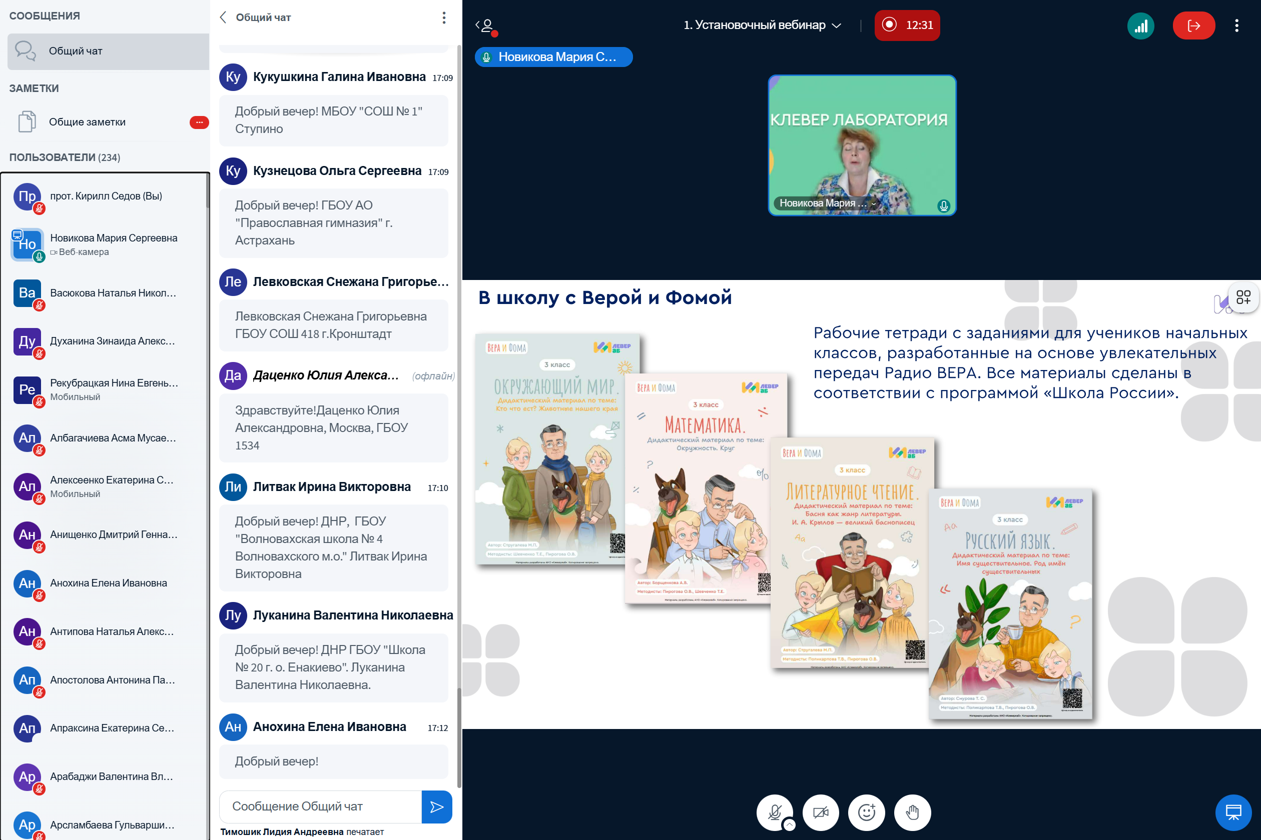 Установочный вебинар провели руководитель программы кураторов З.А. Духанина, благочинный 1-го Воскресенского благочиннического округа Коломенской епархии и куратор курса протоиерей Кирилл Седов, а также заведующая методическим кабинетом ОРОиК Ржевской епархии Н.А. Цветкова.