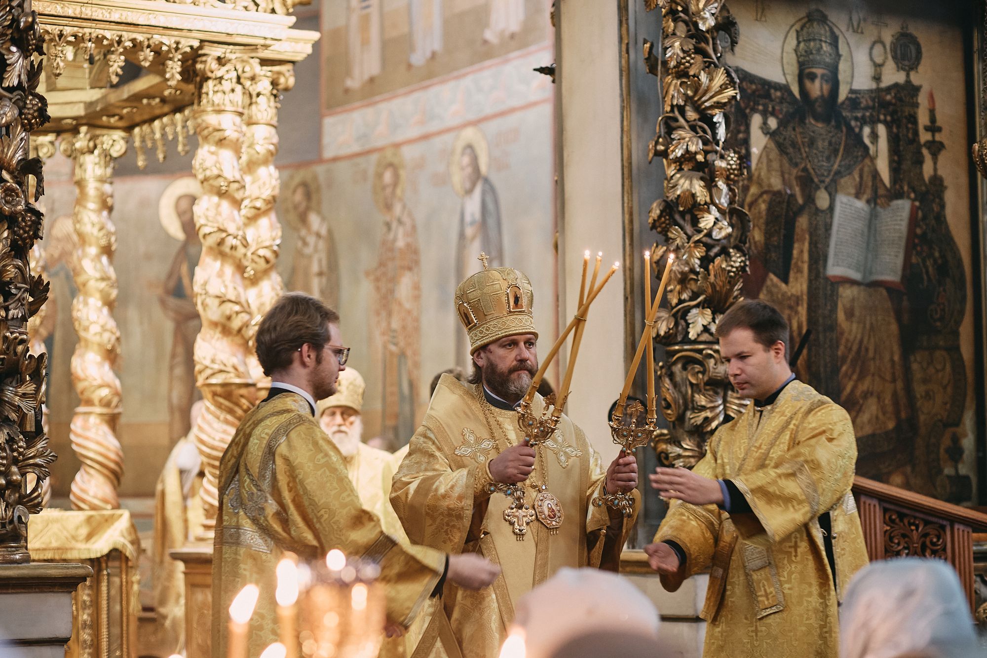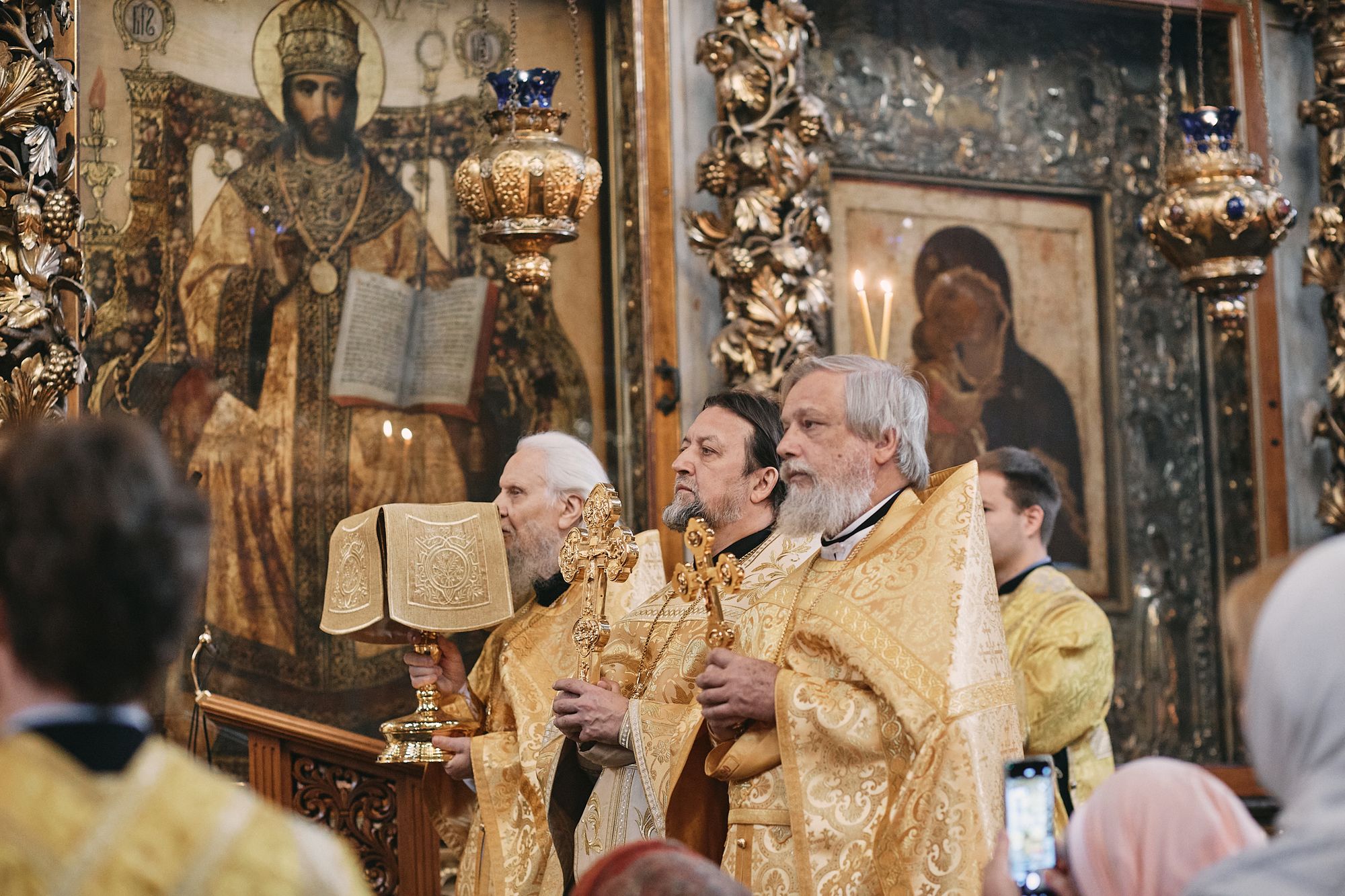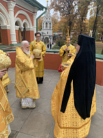 Его Высокопреосвященству сослужили: наместник Донского ставропигиального монастыря города Москвы митрополит Каширский Феогност; архиепископ Одинцовский и Красногорский Фома и епископ Балашихинский и Орехово-Зуевский Николай.
