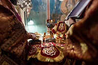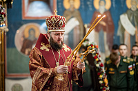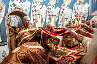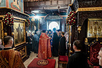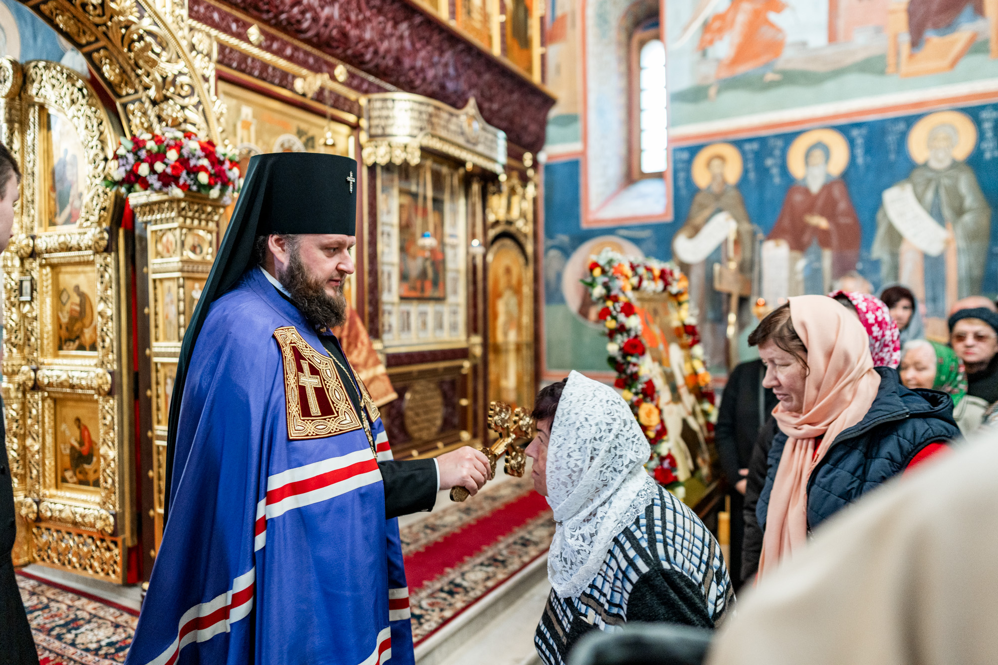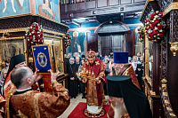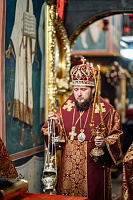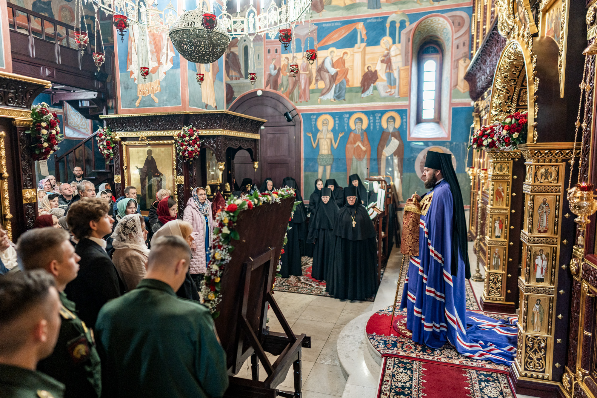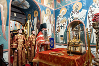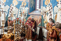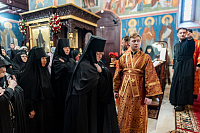 За Божественной литургией владыке сослужили игумен Сергий (Куксов), иерей Дионисий Коськин и клирики Монастырского благочиния.