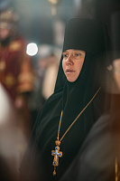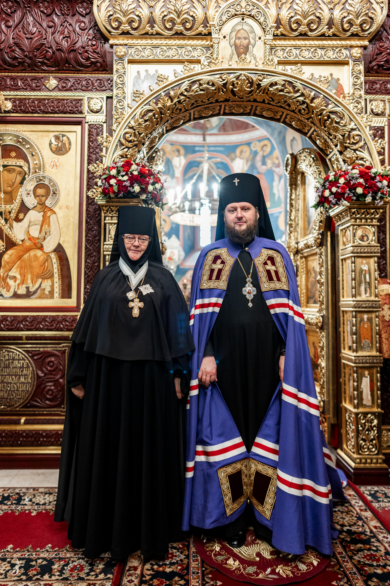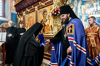 После литургии владыка поздравил игумению Алексию с 60-летием и 30-летием игуменского служения и вручил ей орден великой княгини Елизаветы Фёдоровны II степени, а также наперсный крест.