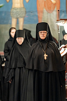 Богослужебные песнопения исполнил хор Владычнего монастыря под управлением игумении Алексии (Петровой).