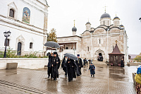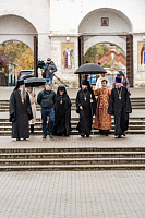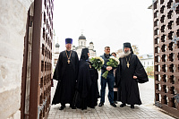 У ворот Владычнего монастыря архиепископа Аксия встретили глава г.о. Серпухов А.В.Шимко, благочинный монастырей Подольской епархии, игумен Вознесенской Давидовой пустыни Сергий (Куксов), благочинный Серпуховского церковного округа иерей Дионисий Коськин и игумения монастыря Алексия (Петрова).