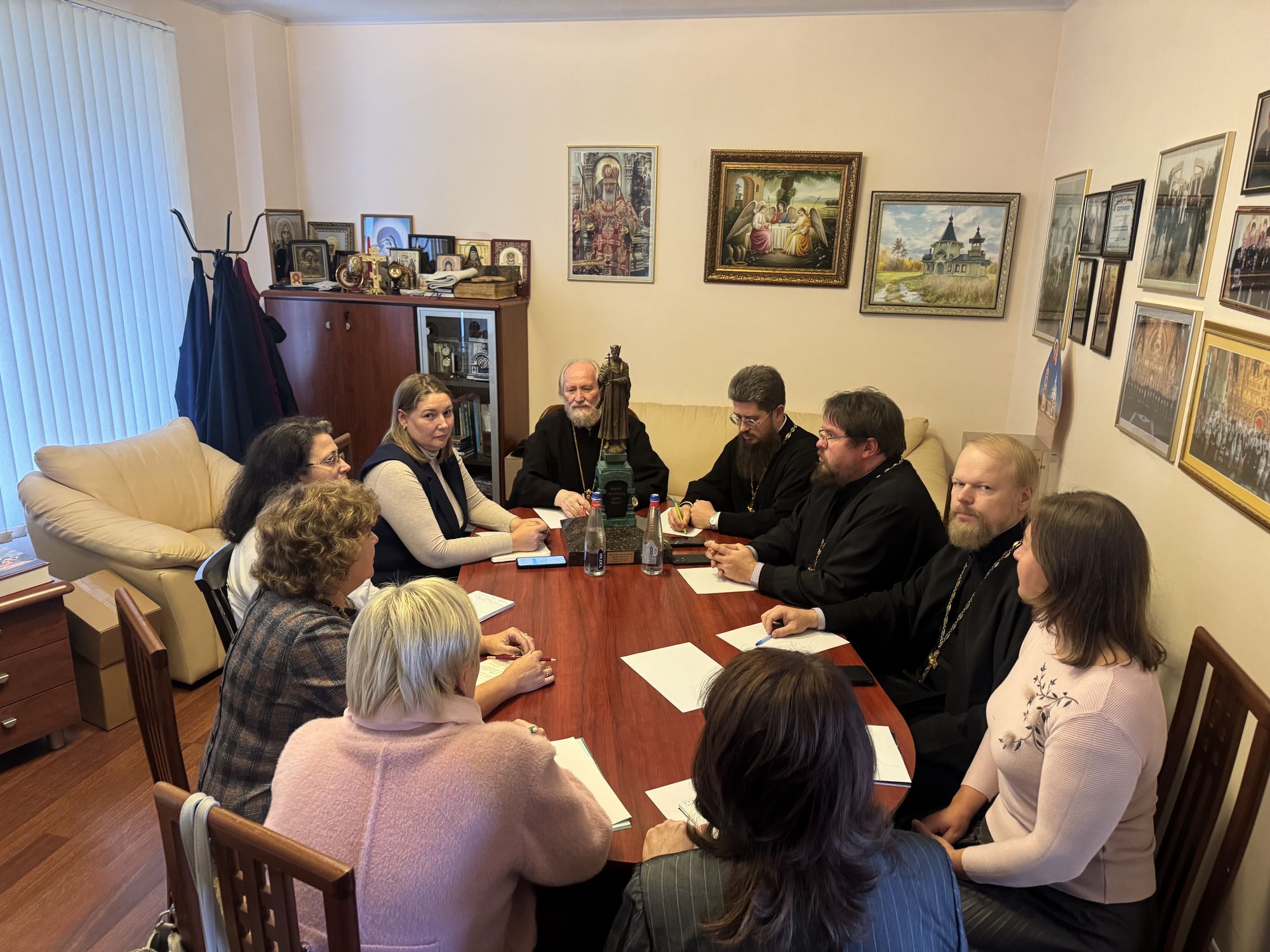 В заседании приняли участие заместитель благочинного священник Димитрий Третьяков, заместитель председателя Епархиального отдела религиозного образования и катехизации священник Александр Амелин, ответственный в Щёлковском благочинии по вопросам семьи, защиты материнства и детства священник Димитрий Медведев, заместитель председателя Комитета по образованию администрации городского округа Щёлково Виктория Александровна Файрушина, директор Учебно-методического образовательного центра городского округа Щёлково Юлия Евгеньевна Капитонова, методист Учебно-методического образовательного центра Валентина Анатольевна Троицкая, директор Православной Алексиевской гимназии при Троицком соборе города Щёлково Анна Викторовна Лыгина, ответственная за проведение мероприятий в Алексиевской гимназии города Щёлково Илларионова Ирина Ивановна и методист Центра детского творчества города Фрязино Ирина Викторовна Вилкова.