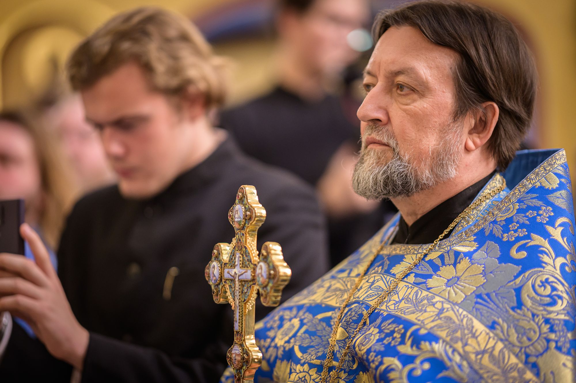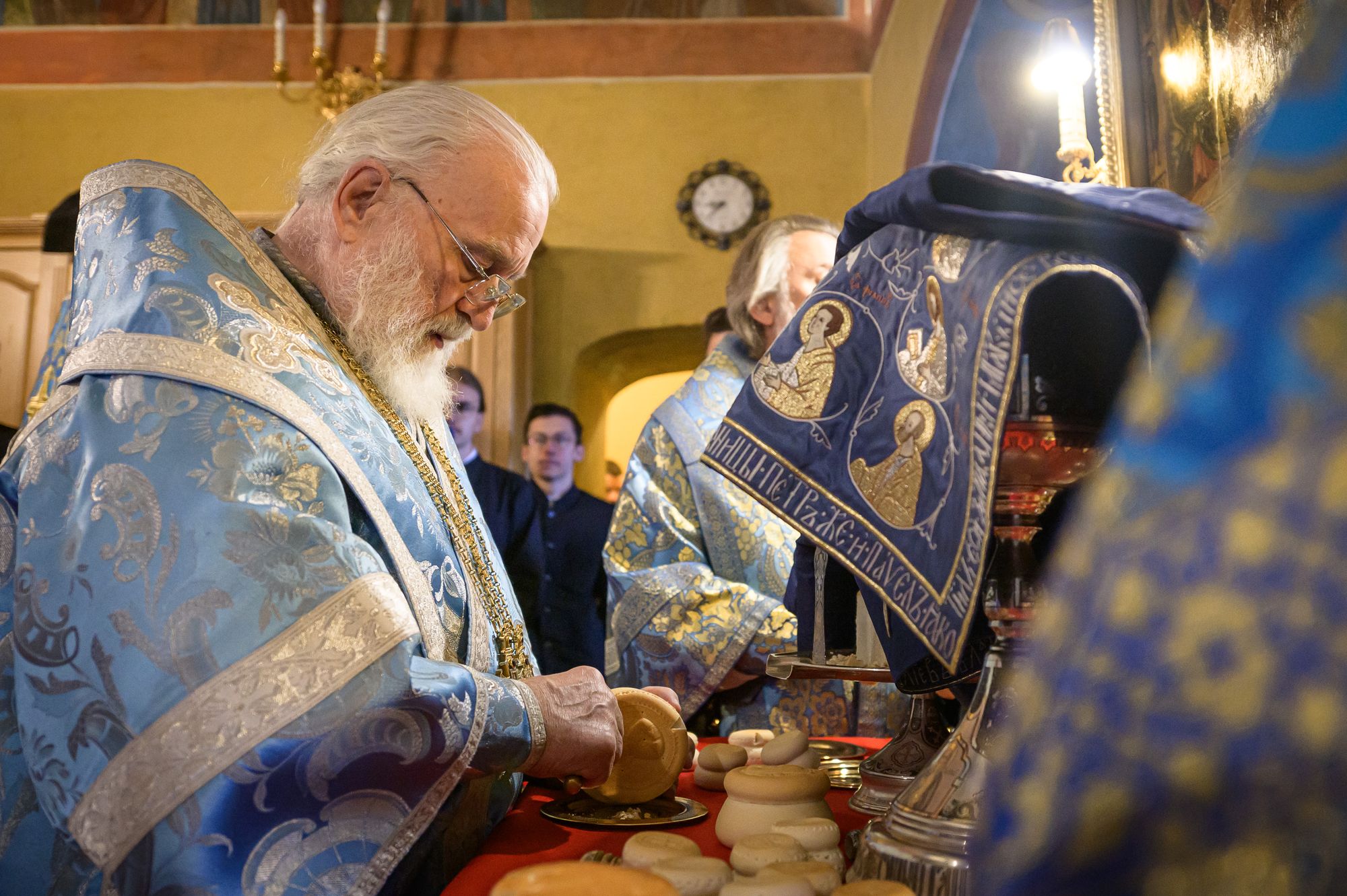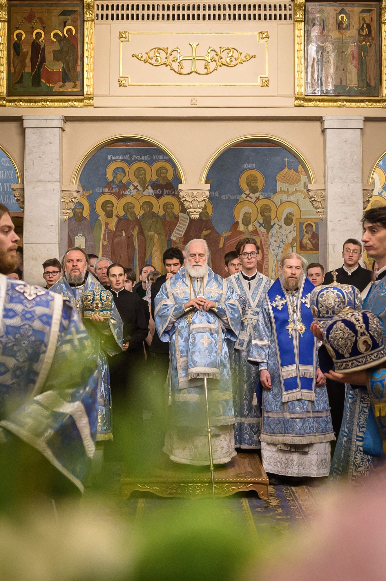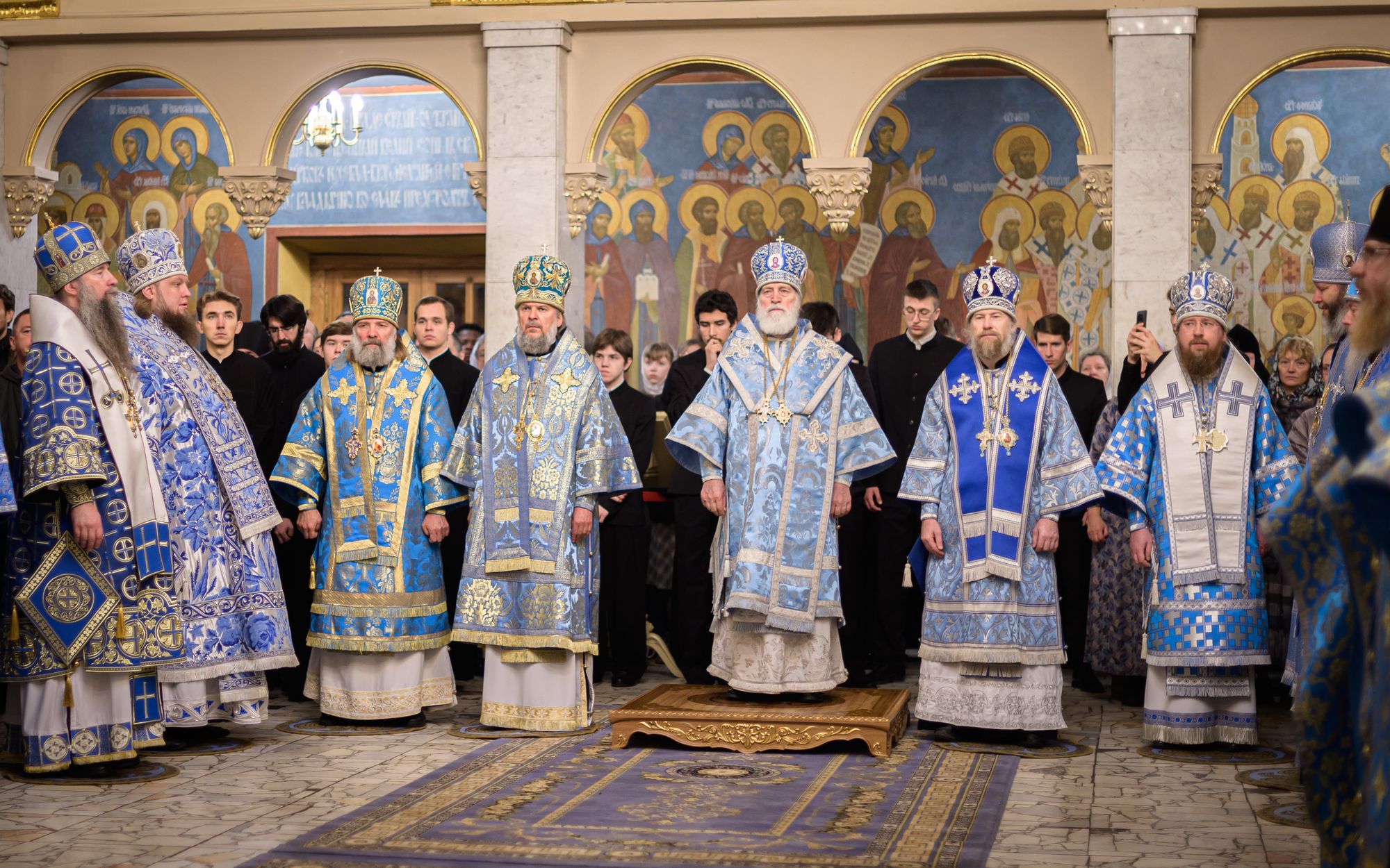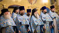 Его Высокопреосвященству сослужили: митрополит Тверской и Кашинский Амвросий; митрополит Воронежский и Лискинский Леонтий; епископ Скопинский и Шацкий Питирим; викарий Тульской епархии епископ Венёвский Феодорит; ректор Санкт-Петербургской духовной академии епископ Петергофский Силуан; ректор Московской духовной академии епископ Сергиево-Посадский и Дмитровский Кирилл; викарий Патриаршего экзархата Африки епископ Луховицкий Евфимий; ректор Хабаровской духовной семинарии, викарий Хабаровской епархии епископ Бикинский Пантелеимон; председатель Учебного комитета Русской Православной Церкви, ректор Общецерковной аспирантуры и докторантуры имени святых равноапостольных Кирилла и Мефодия протоиерей Максим Козлов; почётный ректор Перервинской духовной семинарии протоиерей Владимир Чувикин; ректор Николо-Угрешской духовной семинарии иеромонах Лука (Пронских); проректор по воспитательной работе Сретенской духовной академии иеромонах Зосима (Мельник) и старший помощник проректора по воспитательной работе Сретенской духовной академии иерей Серафим Алпатов; заведующий библиотекой Минской духовной академии иерей Александр Волков; духовенство МДА и гости в священном сане.