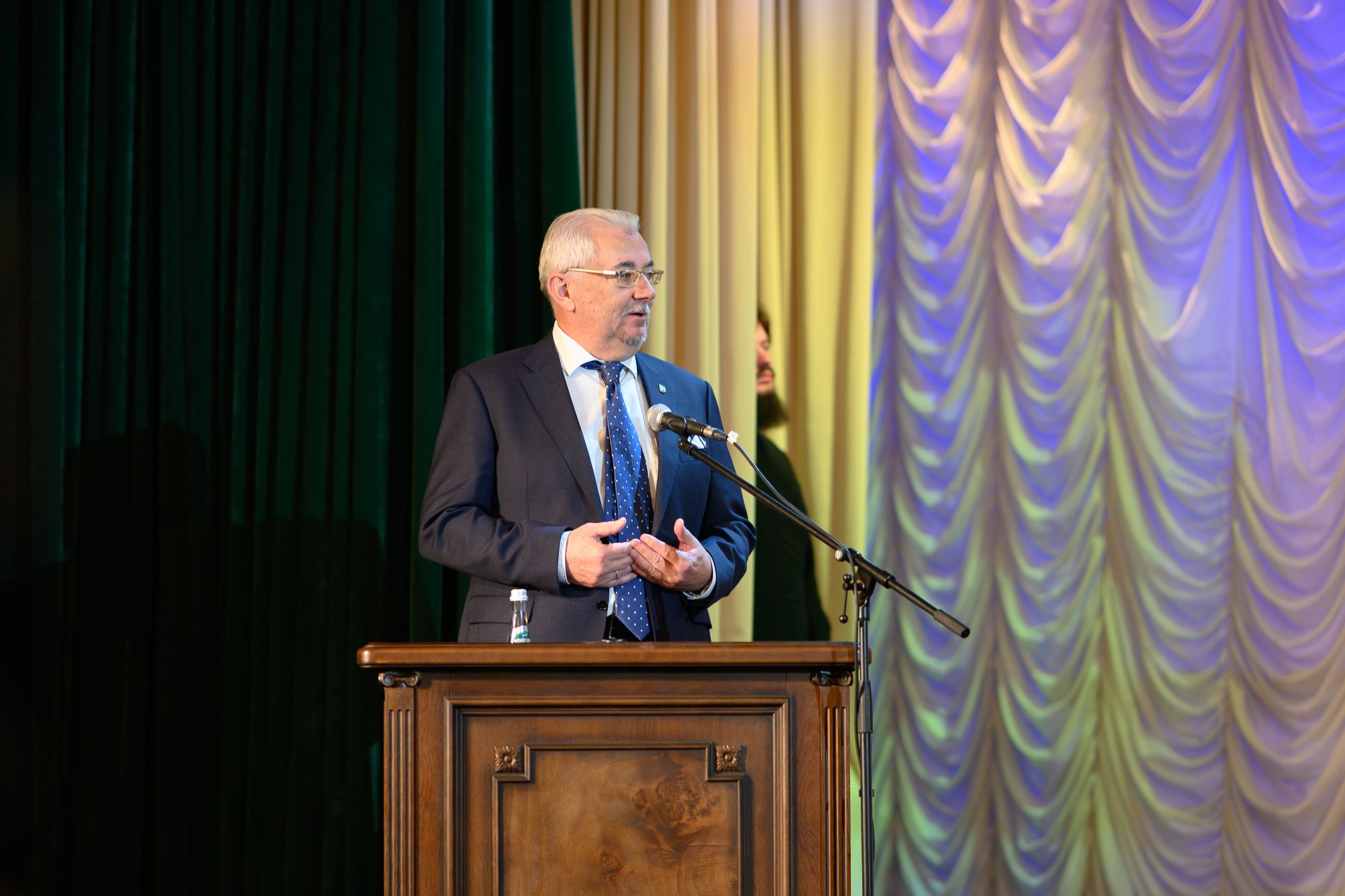Торжественный акт открыл ректор Московской духовной академии и наместник Троице-Сергиевой лавры епископ Сергиево-Посадский и Дмитровский Кирилл, который поздравил собравшихся с престольным праздником Покровского академического храма и актовым днём.