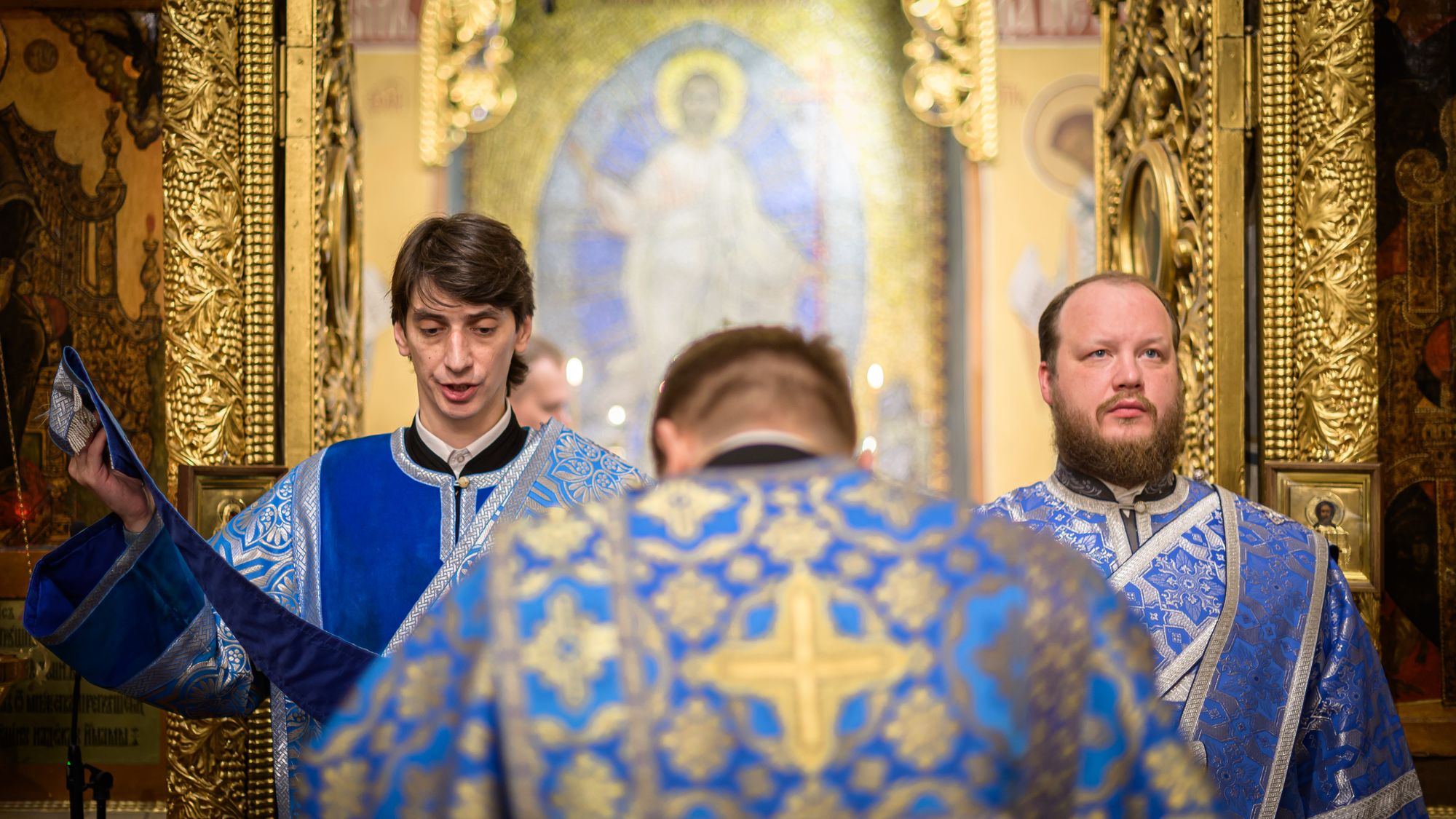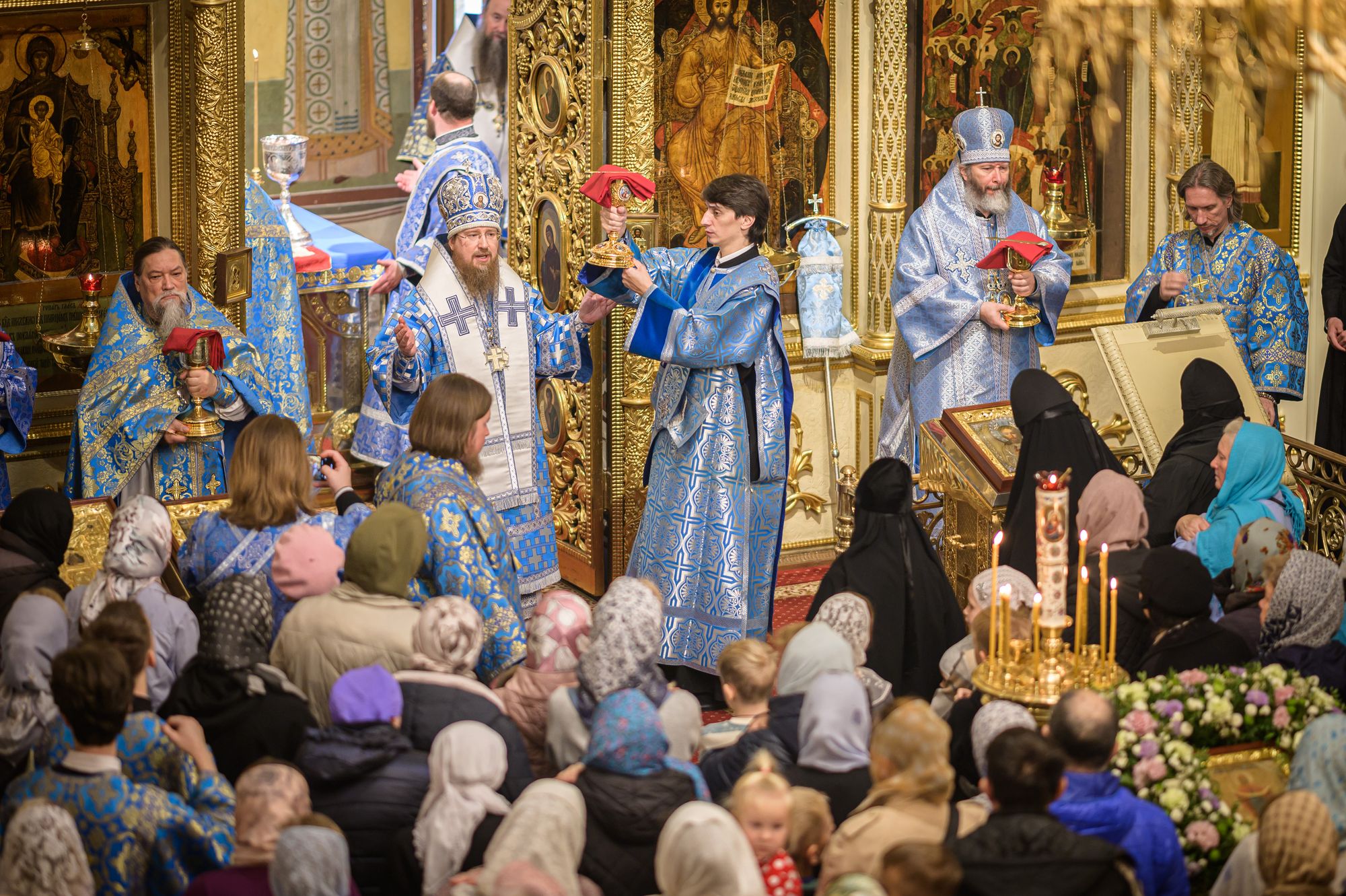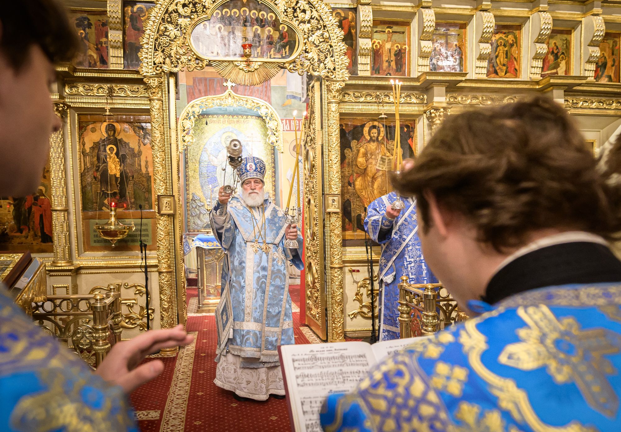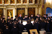 Богослужебные песнопения исполнили мужской хор под управлением Е.В. Боровинского и смешанный хор под управлением С. П. Боровинской.