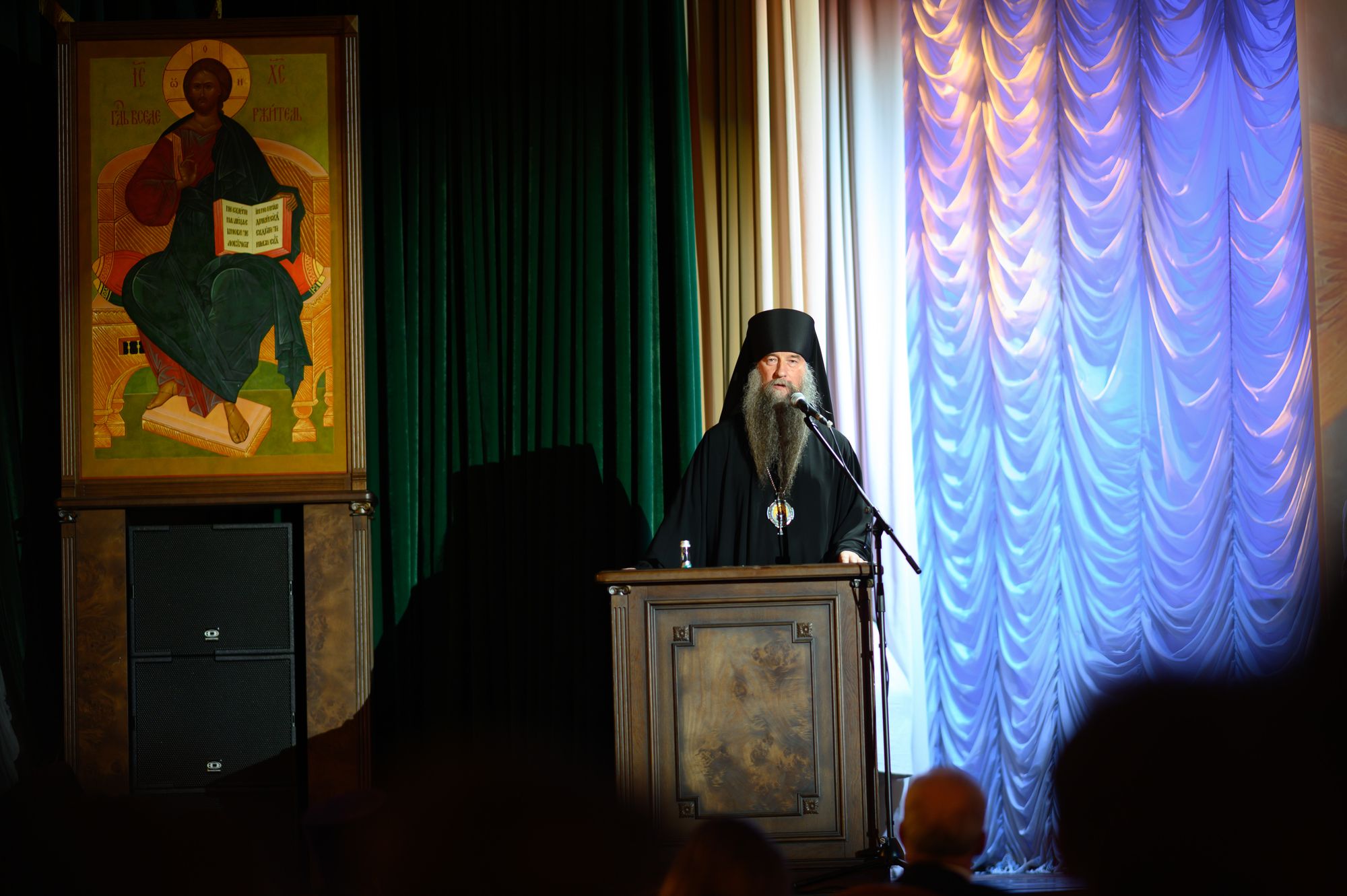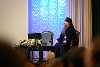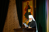 Президиум торжественного акта возглавил Патриарший наместник Московской митрополии, митрополит Крутицкий и Коломенский Павел. В начале своего выступления владыка огласил поздравительное обращение Святейшего Патриарха Московского и всея Руси Кирилла, после чего обратился к преподавателям и студентом с приветственным словом.