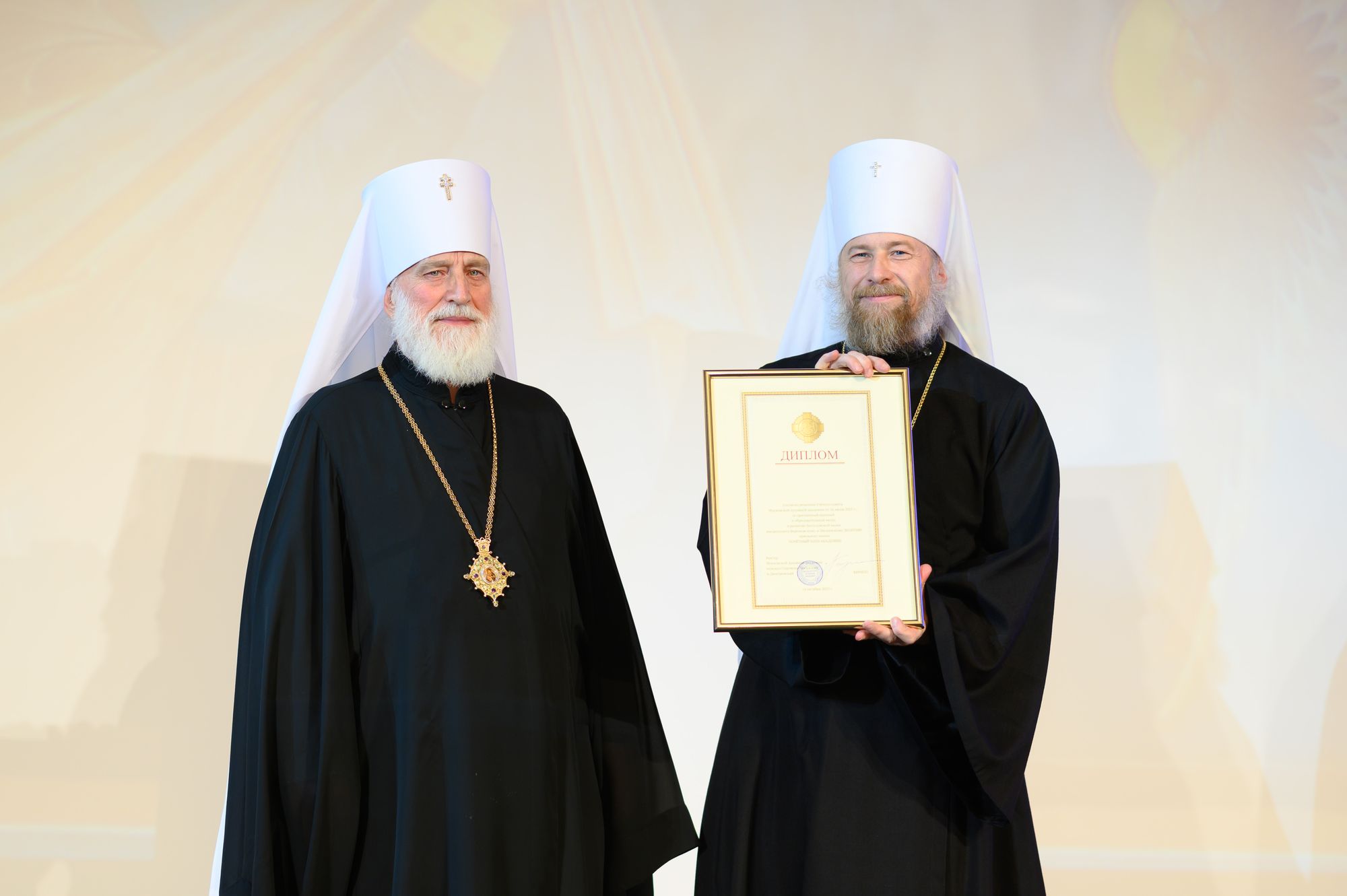 Митрополит Павел также вручил дипломы кандидата богословия тем, кто успешно защитил кандидатские диссертации по богословию в 2025 году: