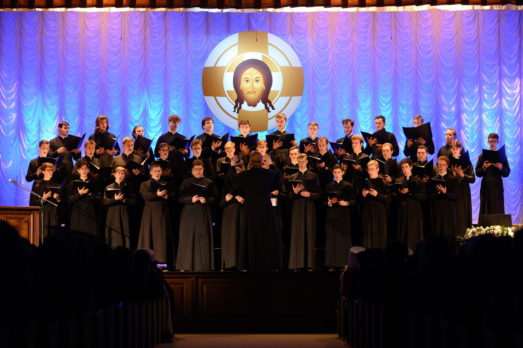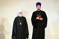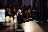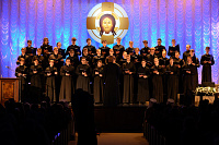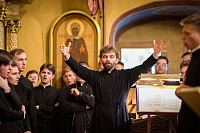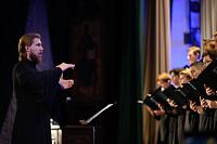 В завершающей части торжественного акта Объединенный хор Свято-Троицкой Сергиевой лавры и Московской духовной академии под управлением диакона Александра Левенцова исполнил праздничные песнопения.