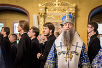 За богослужением молились преподаватели, студенты, сотрудники духовной школы и прихожане Покровского храма.