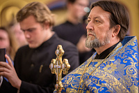 Поздравить Московскую духовную академию с престольным праздником прибыл председатель Учебного комитета Русской Православной Церкви протоиерей Максим Козлов. Зачитав поздравительный адрес от Учебного комитета, отец Максим обратился к собравшимся с словом.