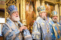 По окончании богослужения было совершено славление Пресвятой Богородицы, после чего митрополит Павел передал молящимся благословение Святейшего Патриарха Московского и всея Руси Кирилла и обратился с архипастырским словом.