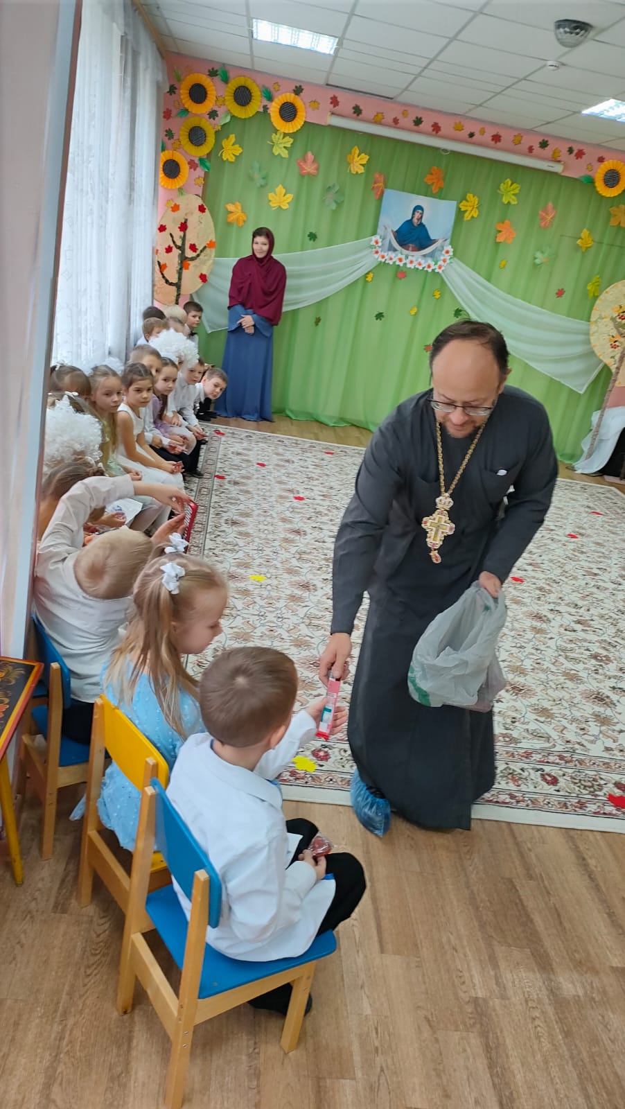 14 октября настоятель Богородицерождественского храма села Клемово, протоиерей Алексий Носков посетил Дошкольное образовательное учреждение№2 «Солнышко». Отец Алексий поздравил собравшихся с Праздником Покрова Пресвятой Богородицы и подарил детишкам сладкие подарки.