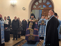 Владыке сослужили клирики собора.