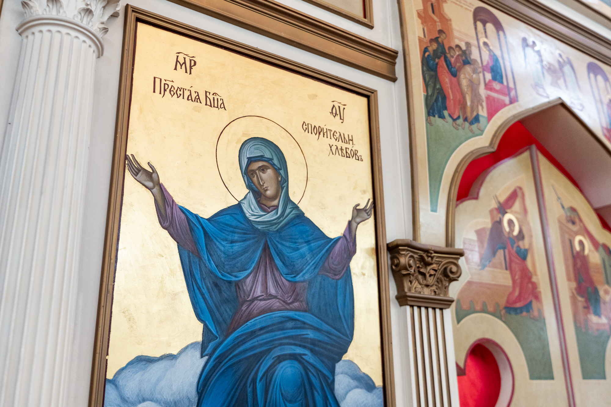 В конце богослужения перед праздничной иконой Божией Матери «Спорительница хлебов» было совершено славление.