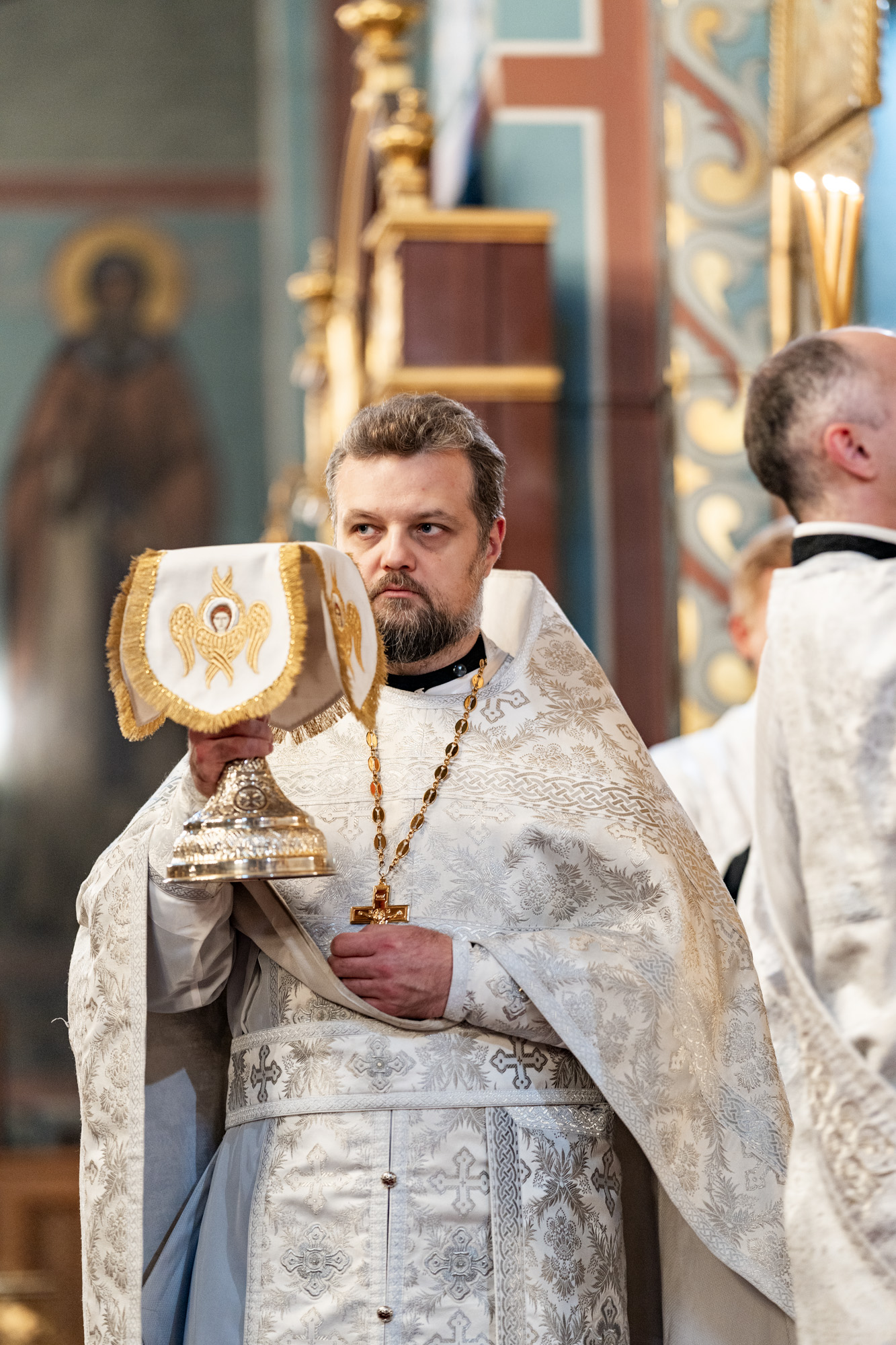 Богослужебные песнопения исполнил архиерейский хор Подольской епархии под управлением Ярослава Филипсонова.