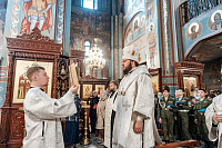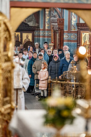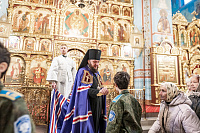 За богослужением молились заместитель главы г.о. Домодедово Ю.В.Терещенко, курсанты Православного казачьего военно-патриотического клуба «Домодедовская дружина имени благоверного князя Владимира Храброго», воспитанники детского морского центра «Альбатрос» под руководством Е.П.Литвинова и прихожане храма.