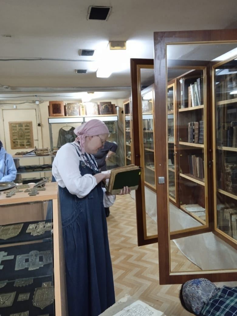 Гости поклонились святыням храма, посетили церковно-археологический кабинет, помогли с учётом и систематизацией предметов старины, книг и икон, с которыми их ознакомили настоятель храма священник Антоний Рыжаков и преподаватель приходской воскресной школы О. Г. Солонцова.