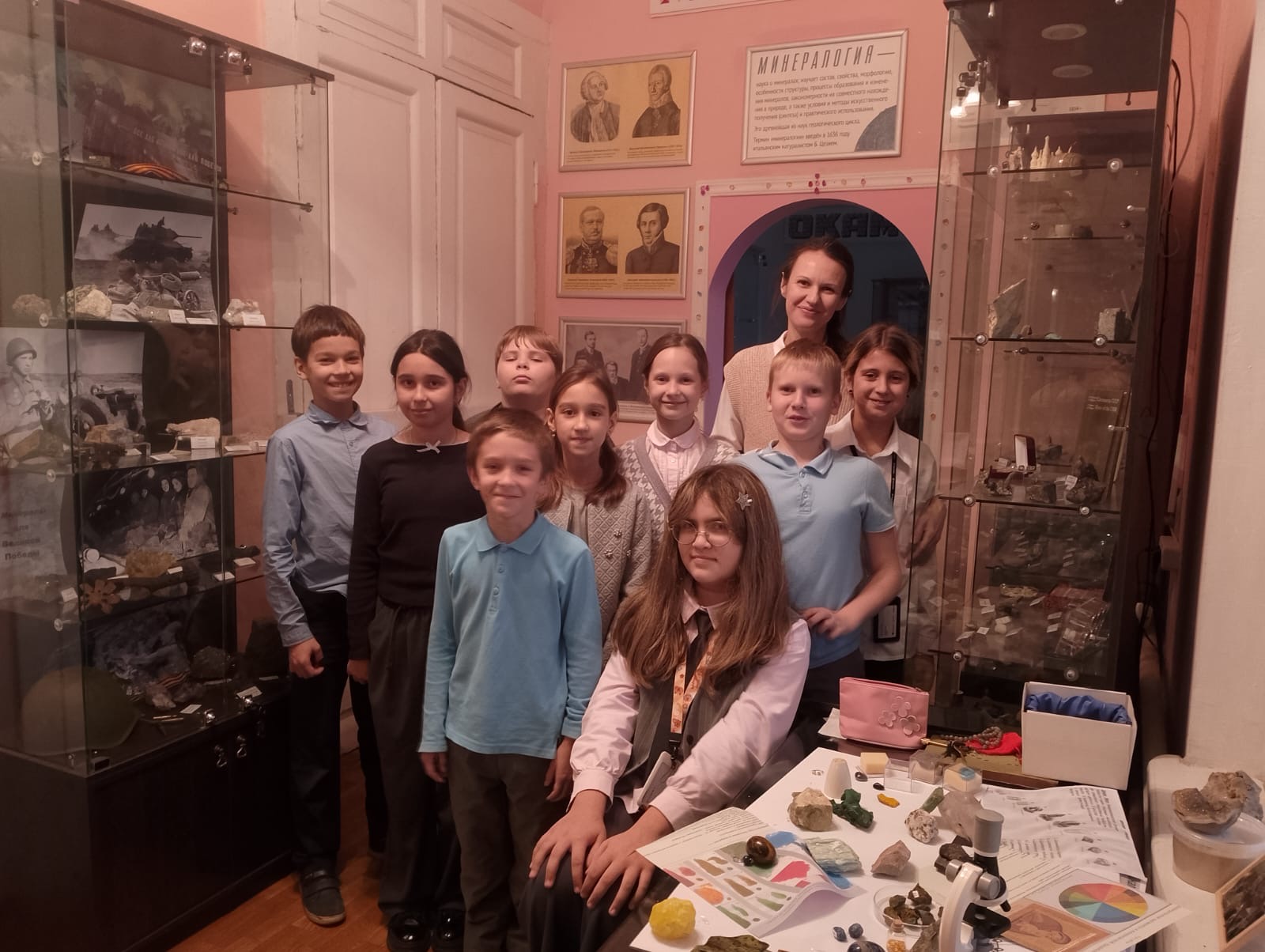 27 октября ученики 4 класса посетили Кабинет минералов и окаменелостей и Мастерскую росписи по дереву на приходе Пантелеимоновского храма. Экскурсия началась в Кабинете минералов и окаменелостей. Здесь ребята с интересом изучали минеральные пигменты, применяемые в художественном искусстве. Каждый школьник попробовал рисовать этими уникальными материалами, экспериментируя с цветами и текстурами. Особое удивление вызвал эффект свечения минералов под УФ-светом — явление люминесценции. Экскурсия продолжилась в Мастерской росписи по дереву, где четвероклассники расписывали деревянные заготовки в различных техниках русских народных.