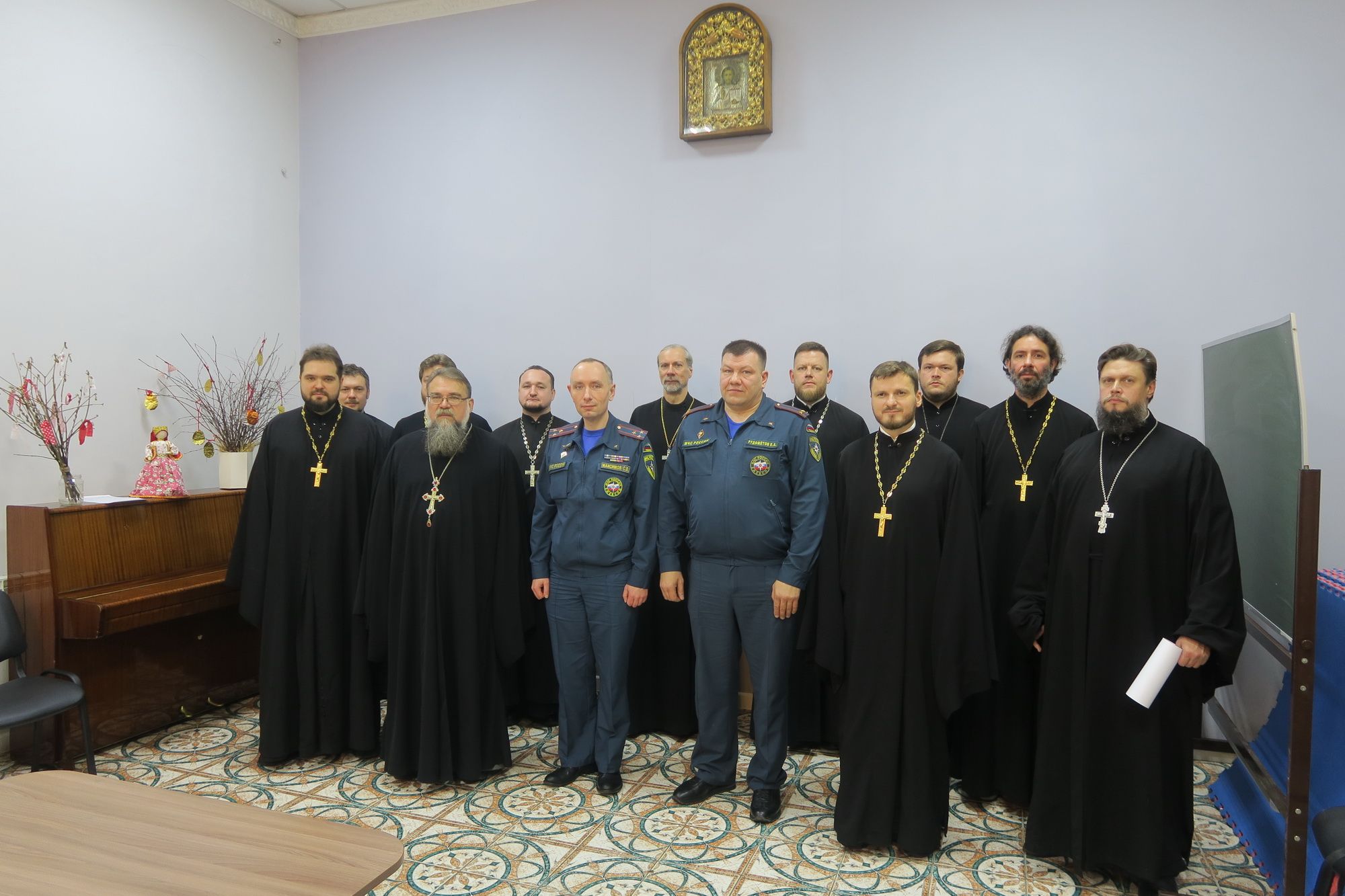 Начальник отделения надзорной деятельности по городскому округу Балашиха Управления надзорной деятельности и профилактической работы Главного управления МЧС России по Московской области Сергей Владимирович Максимов и заместитель главного государственного инспектора городского округа Балашиха по пожарному надзору, подполковник МЧС Евгений Анатольевич Рудометов провели для духовенства инструктаж, напомнили о требованиях пожарной безопасности на объектах религиозного назначения и ответили на вопросы священнослужителей.