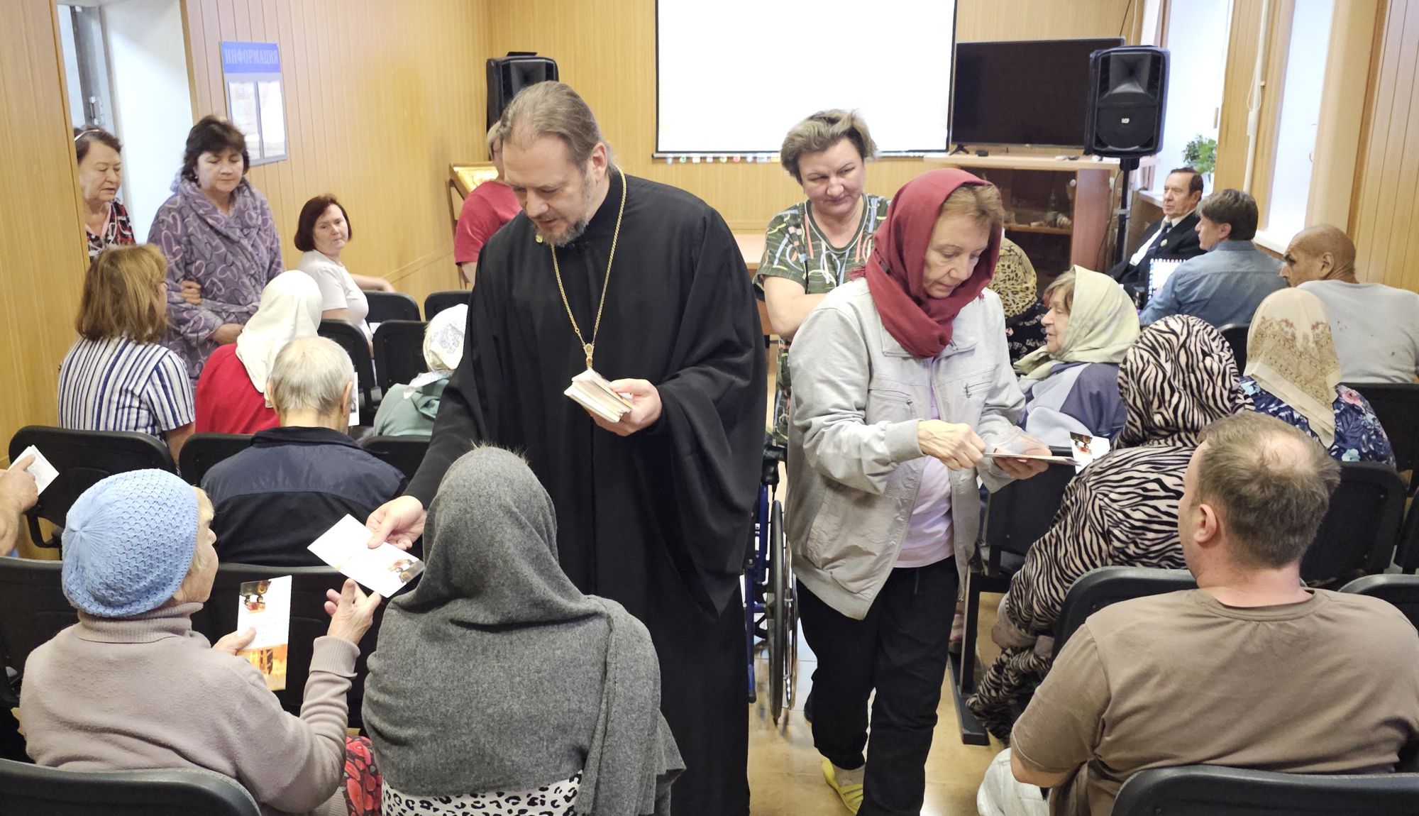 Настоятель храма протоиерей Сергий Якимов поздравил руководство больницы и людей, проходящих лечение, с праздниками, а затем представил исполнителя.