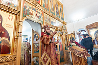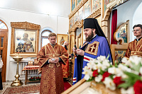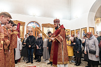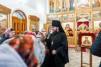 По окончании богослужения настоятель храма иерей Георгий Харин поблагодарил архиепископа Аксия за видит и преподнёс ему панагию и крест.