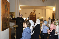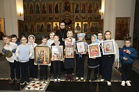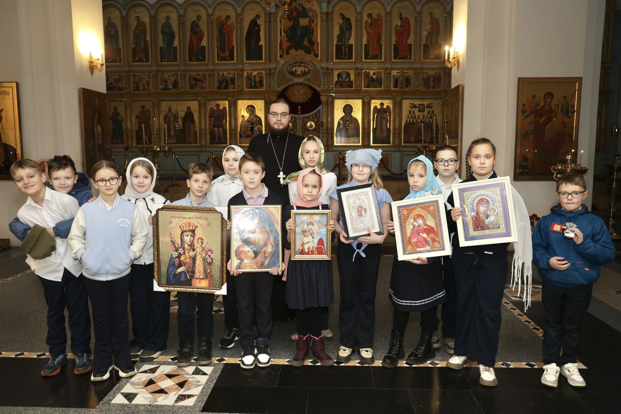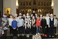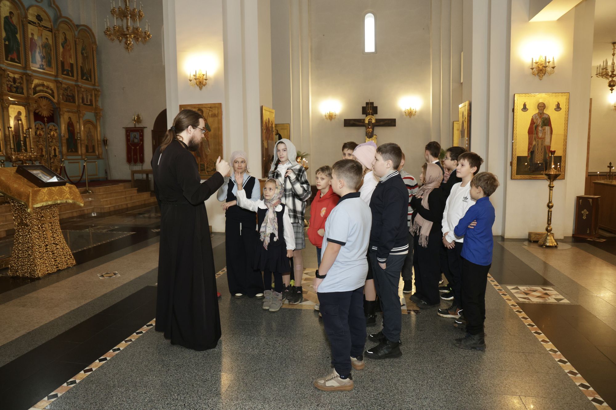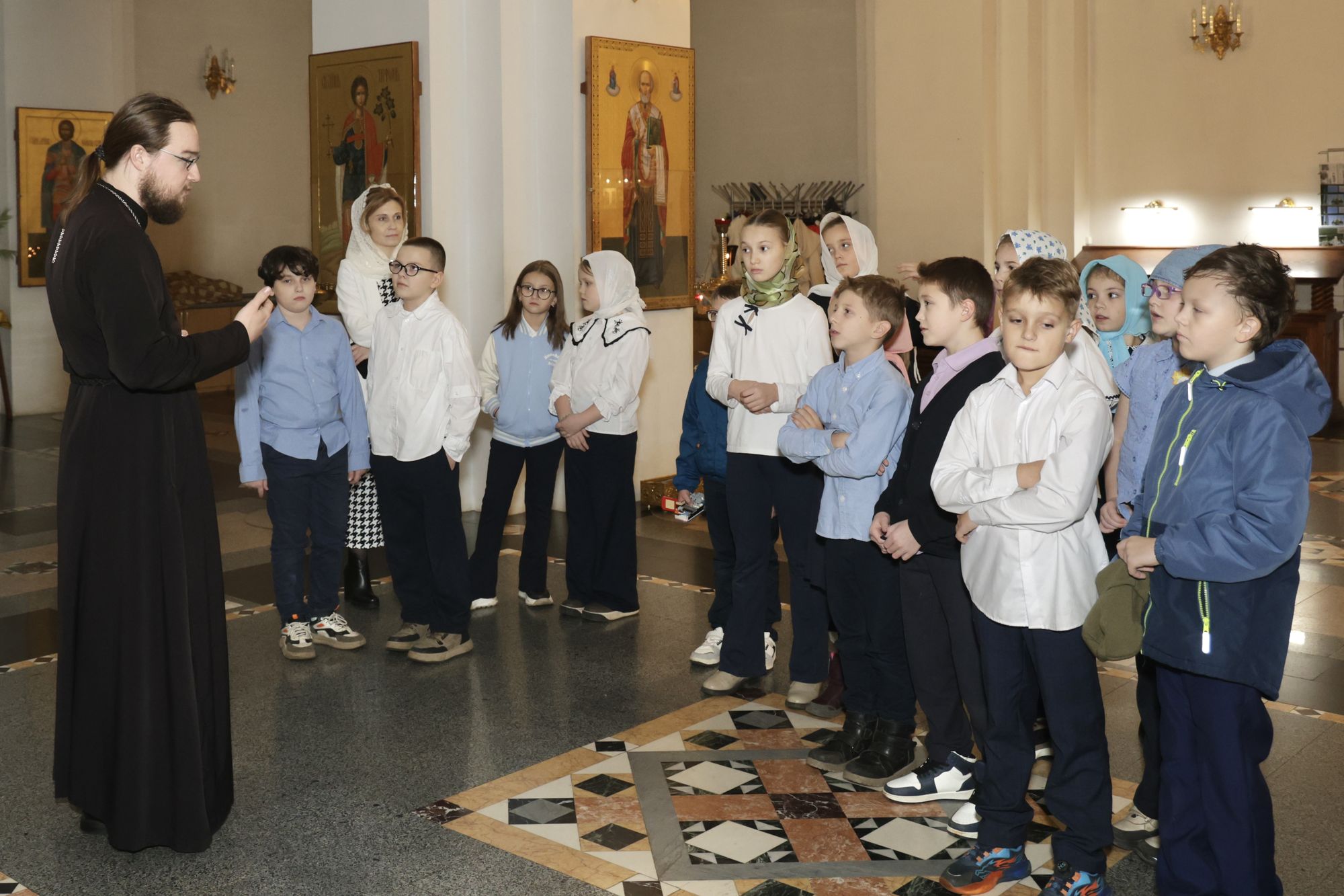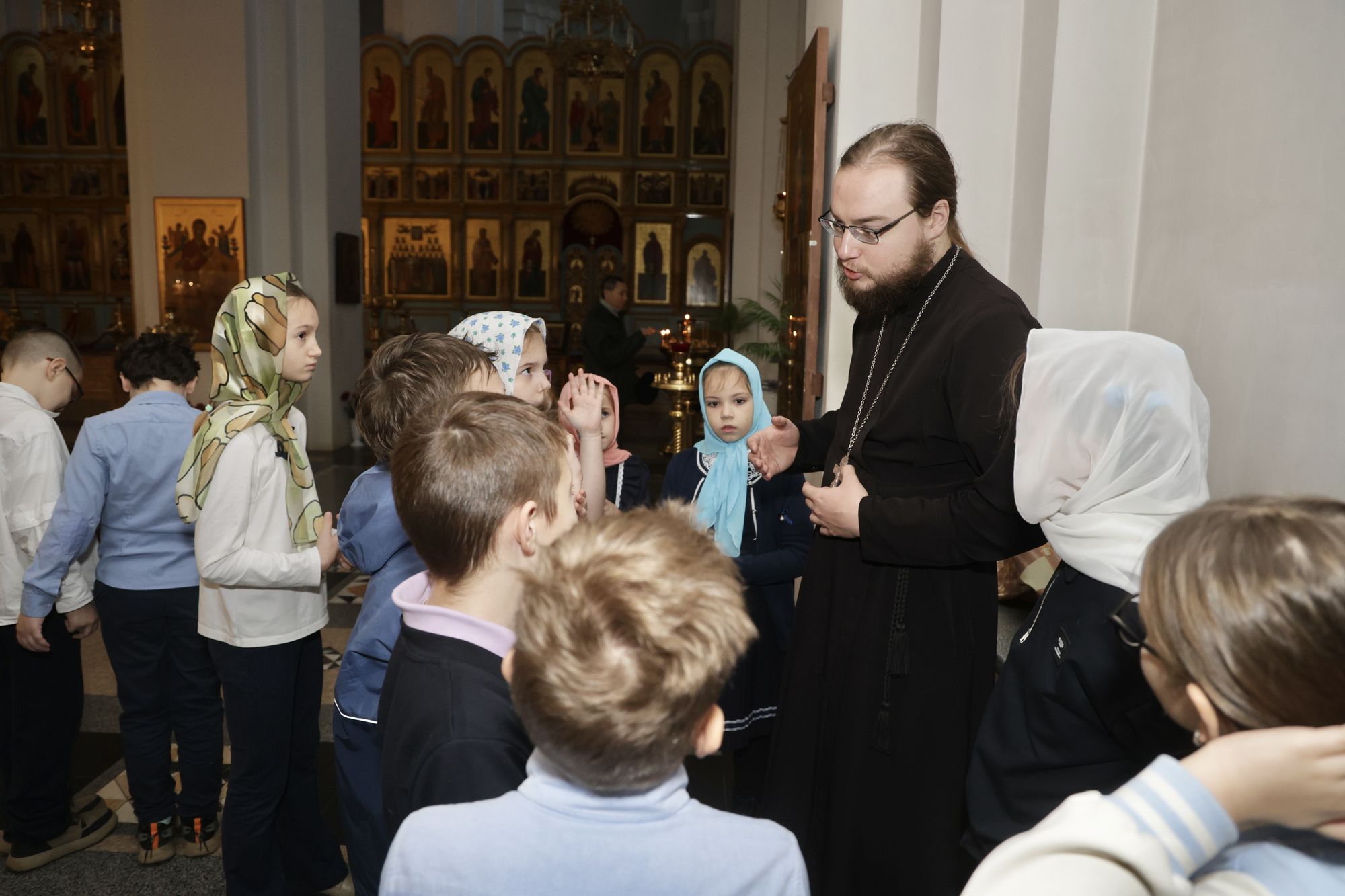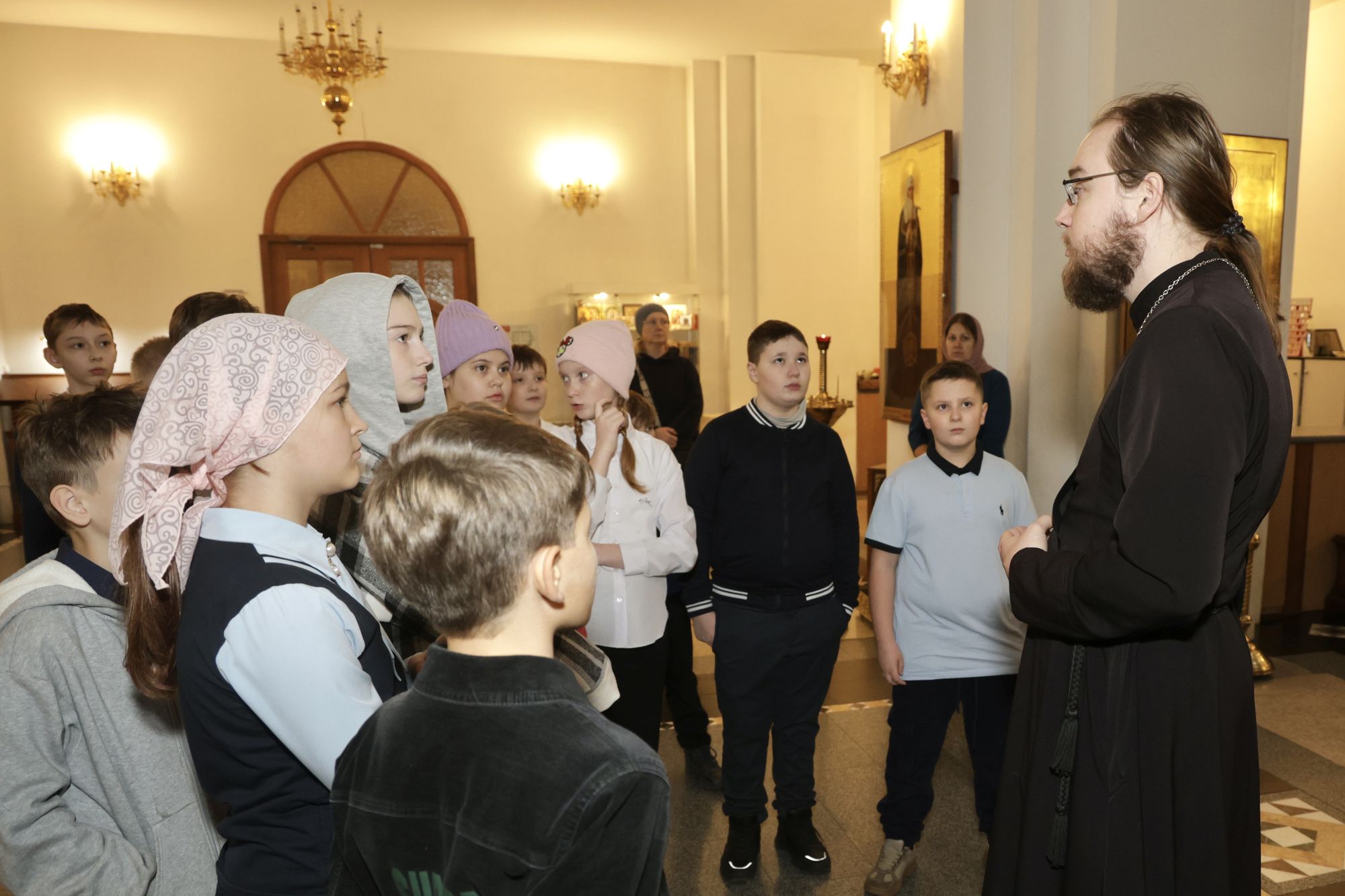 7 ноября клирик иерей Иоанн Каштанов встретился с учащимися 4-х классов МОУ «Лицей им. Стрельцова П.В.» (классный руководитель М.В. Чабан) и МОУ «СОШ «Вектор» (классные руководители Е.В. Каурова и Д.В. Соломатина). Ребята узнали об особенностях храмового устройства, иконах и истории православной культуры.