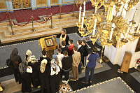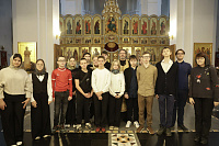 6 ноября клирик иерей Виктор Грачёв провёл для ребят из 8 класса МОУ СОШ «Горизонт» (классный руководитель Ю.Ф. Гнутова) познавательную экскурсию по собору, рассказав о его истории и предметах внутреннего убранства.