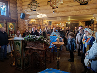 В начале паломнической поездки в храме преподобного Сергия Радонежского д. Костино Пушкинского г.о. Ивантеевского благочиния председатель Епархиального отдела по организованному православному отдыху, паломничеству и туризму, настоятель храма иерей Виктор Селезнёв совершил молебен перед Казанской иконы Божией Матери и образом преподобного Сергия.