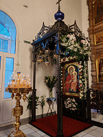 По заамвонной молитве было совершено славление перед иконой Божией Матери «Скоропослушница», после чего игумения Капитолина поблагодарила владыку Николая за совершённое богослужение.