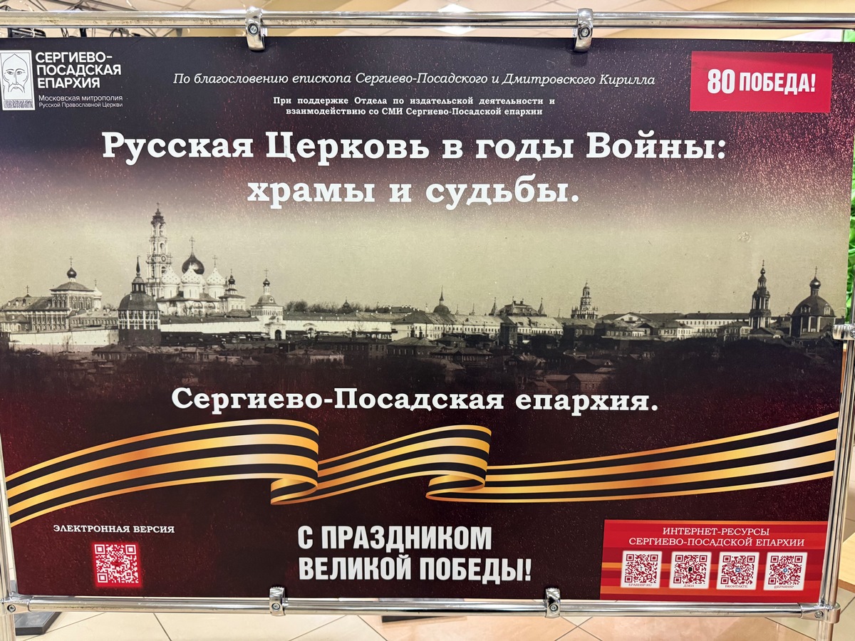 Также в холле дворца культуры состоялось открытие передвижной выставки «Русская Церковь в годы Войны: храмы и судьбы. Сергиево-Посадская епархия». Выставка создана по благословению епископа Сергиево-Посадского и Дмитровского Кирилла и приурочена к 80-летию Победы в Великой Отечественной войне.