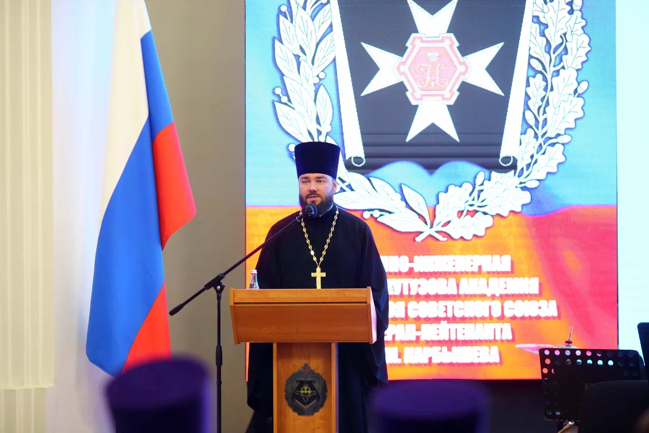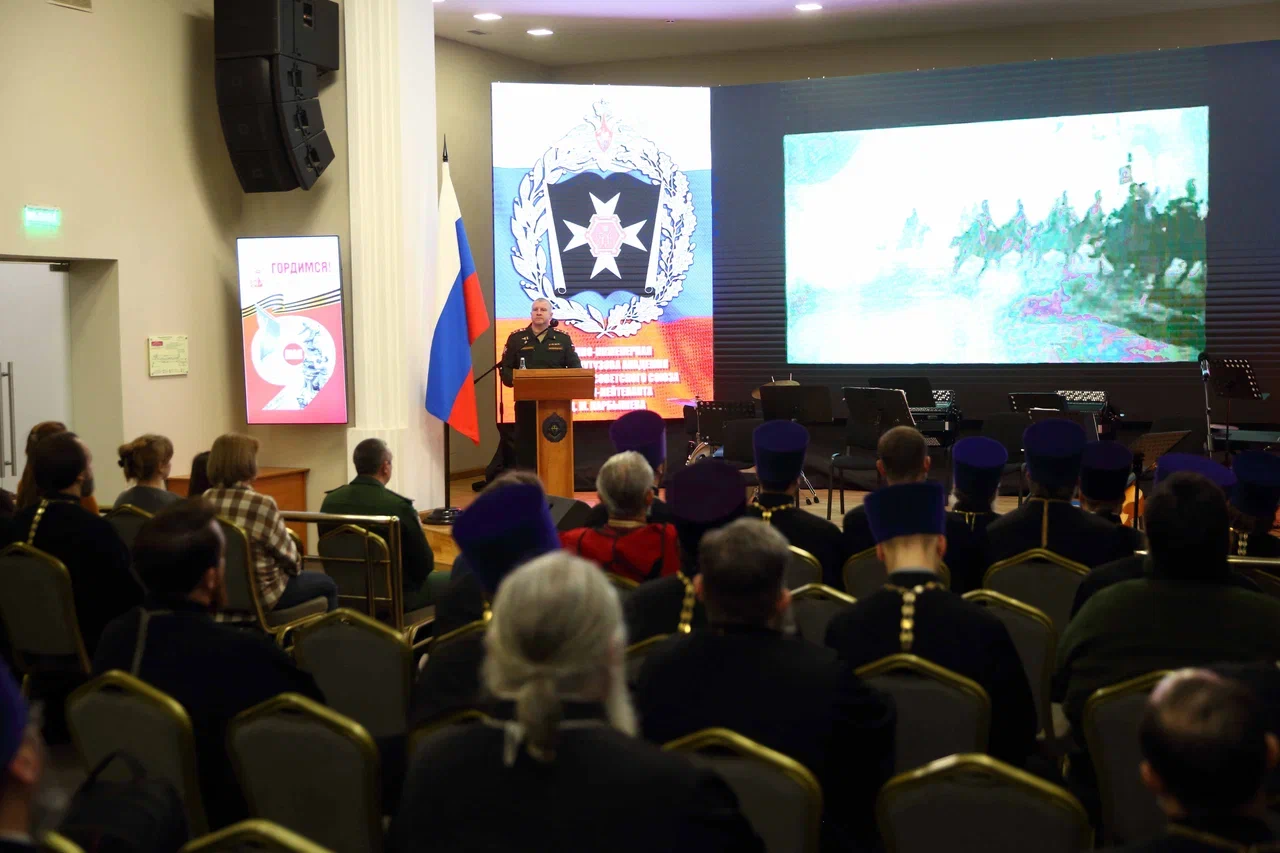 С приветственным словом к участникам мероприятия обратились начальник академии генерал-майор Андрей Алексеевич Круглов, помощник председателя Синодального отдела по взаимодействию с Вооруженными силам и правоохранительным органами, ответственный секретарь Синодального комитета по взаимодействию с казачеством иерей Тимофей Чайкин и протоиерей Марк Ермолаев.